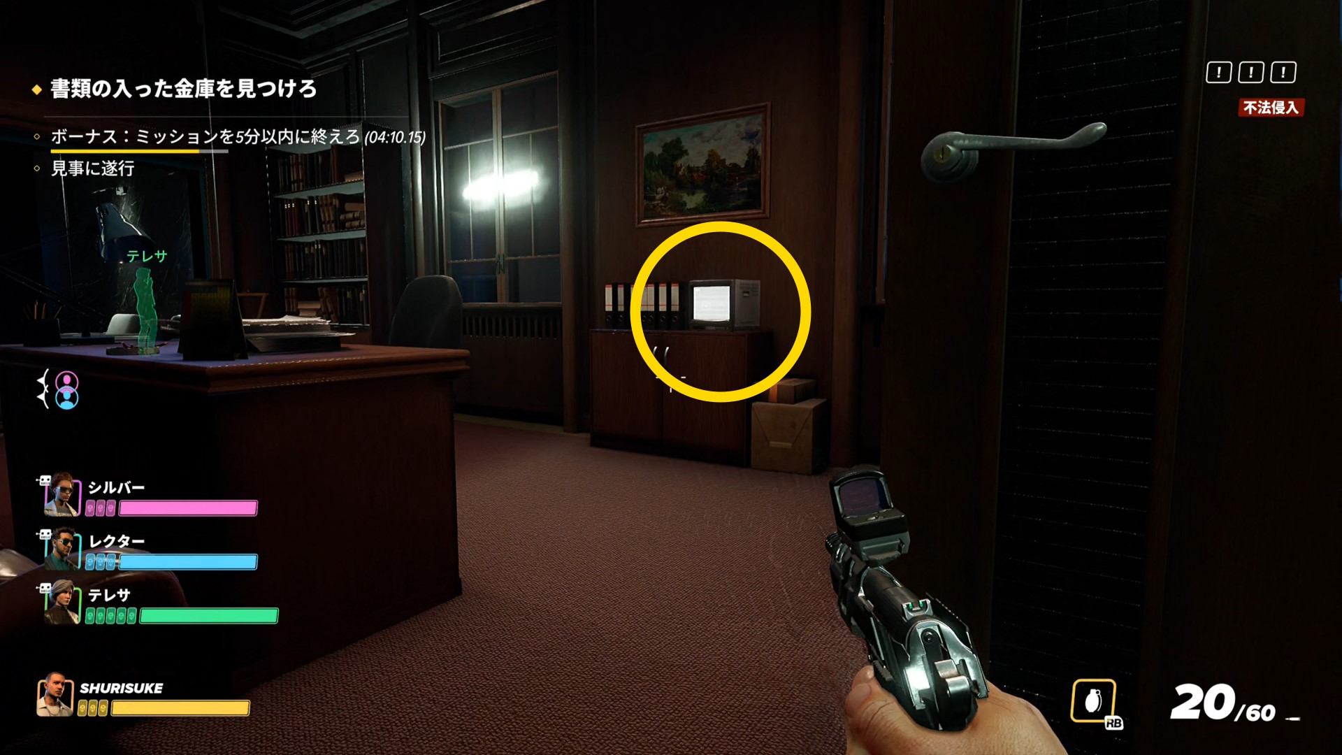 • メイン目標は店内の金庫に入った書類を回収すること(宝石類は報酬が増えるだけなので時間がタイトに感じる場合は書類の回収だけに注力する)