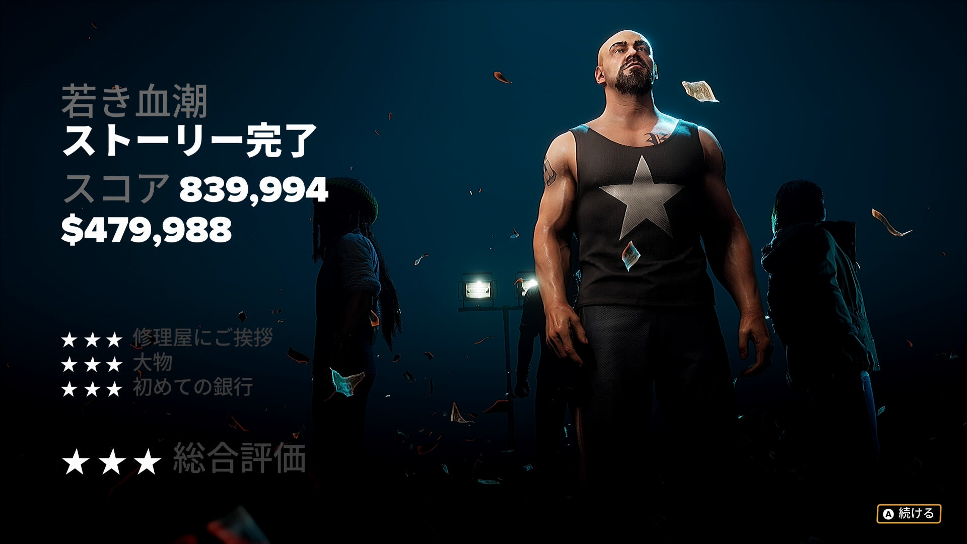 - 獲得した星の数に関係なく、ミッション3をクリアするとリザルト画面で 実績「今日から裏社会の一員」解除