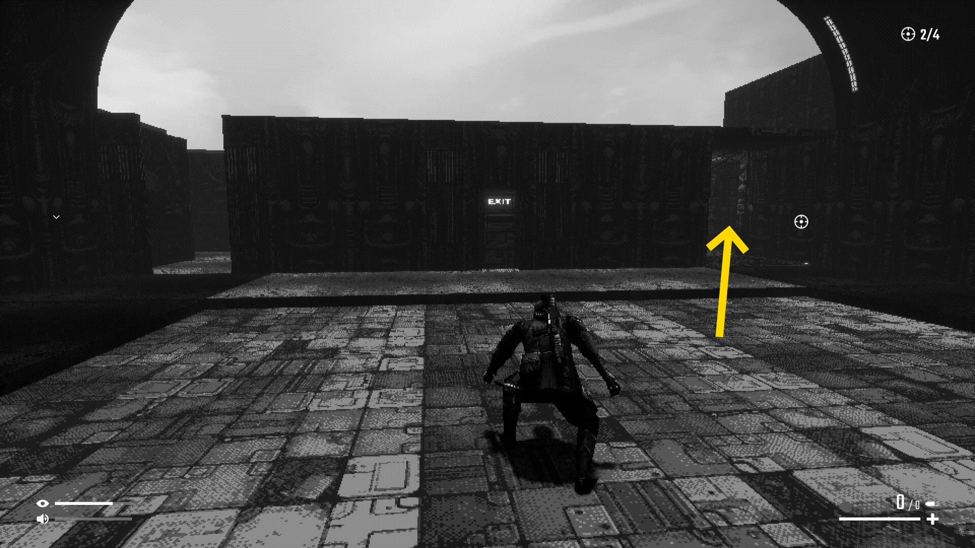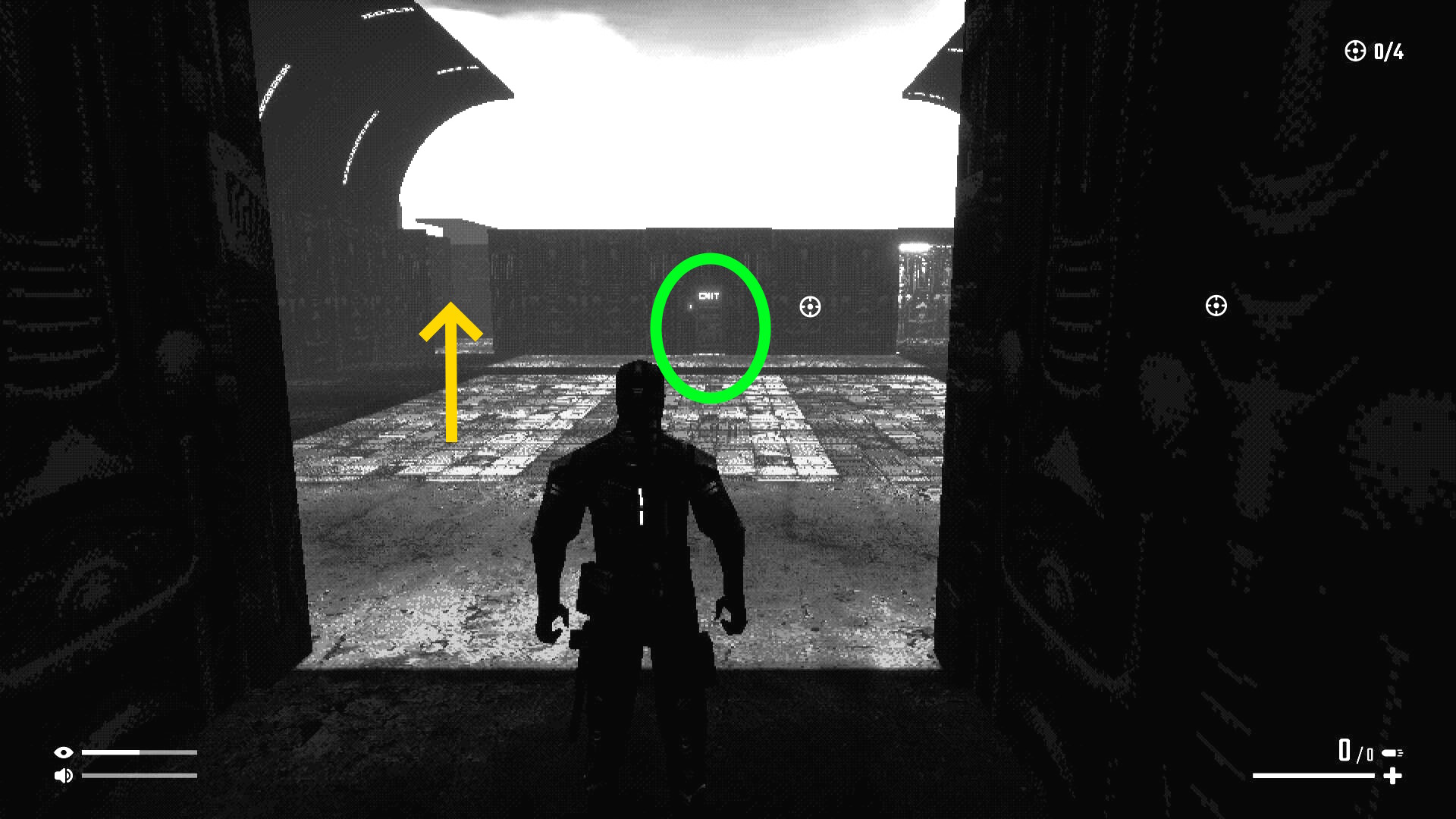 • 開始地点の正面奥に EXIT がある(下画像:緑◯)