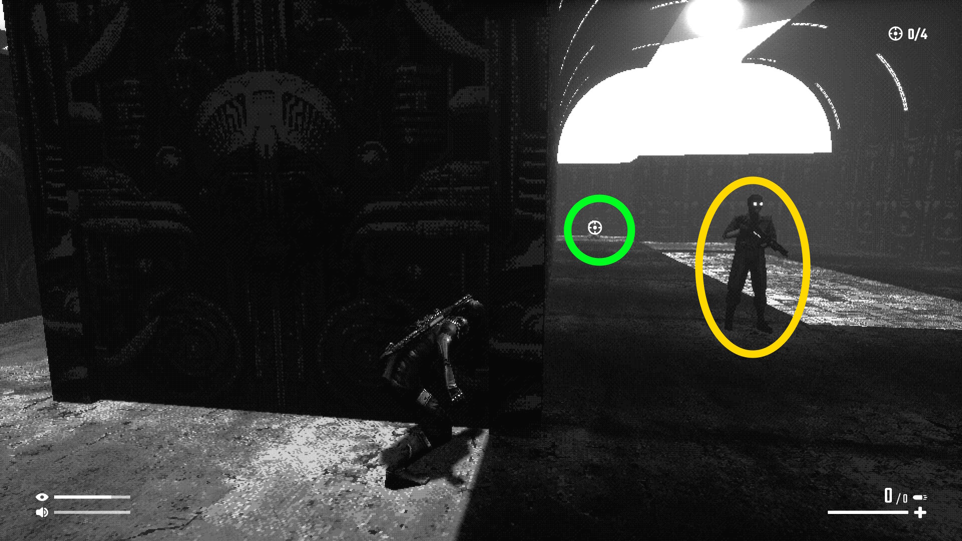 • 監視カメラの下でアーマーをキルすると見つかり、他のアーマーが来てしまう。足音消しを発動し、ダッシュで背後に近づいてステルスキルすると良い