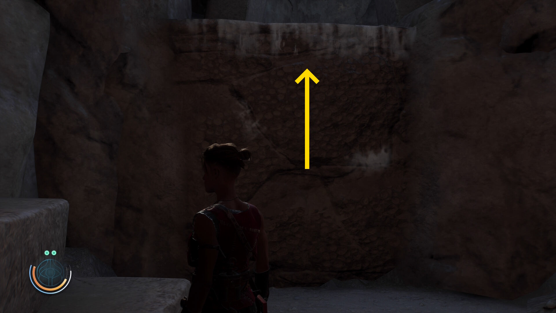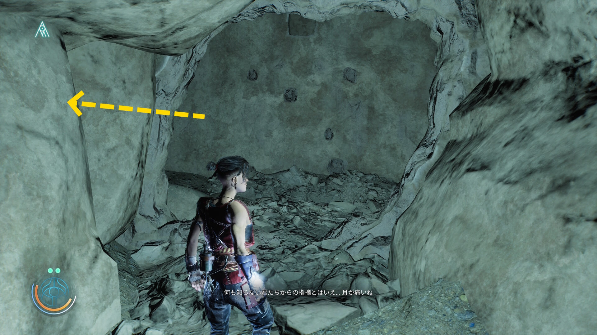 • ルーサーがブクラに通信を始めた辺り(ブクラからの返信はない)、右前方の壁に掴まって登っていく