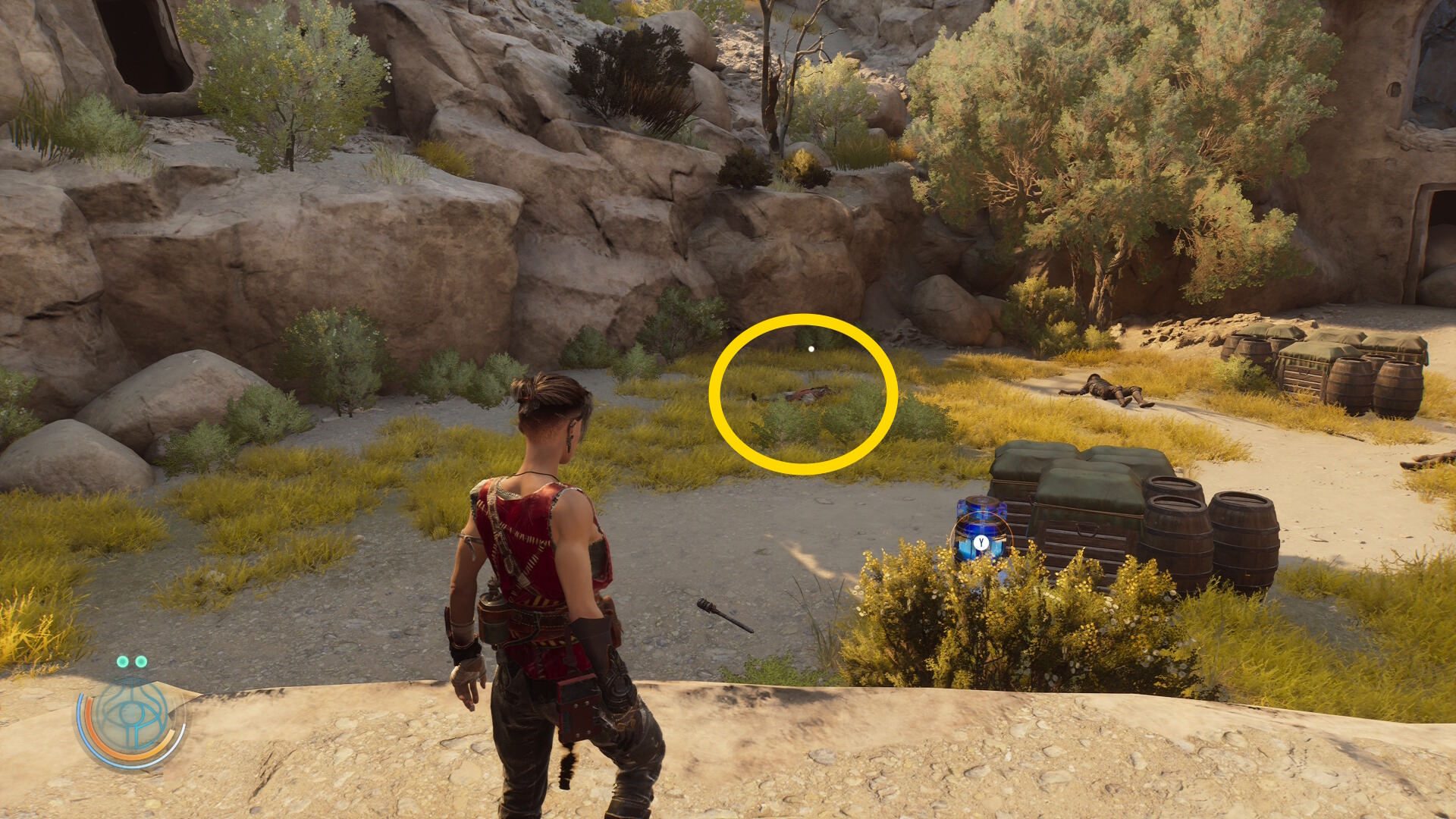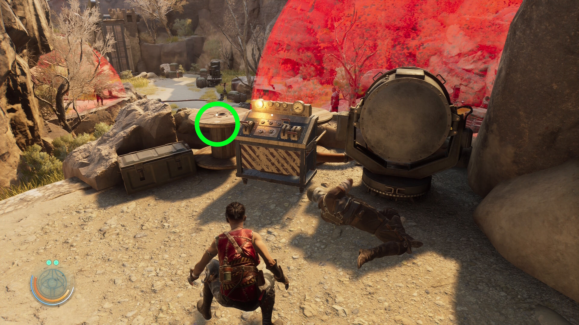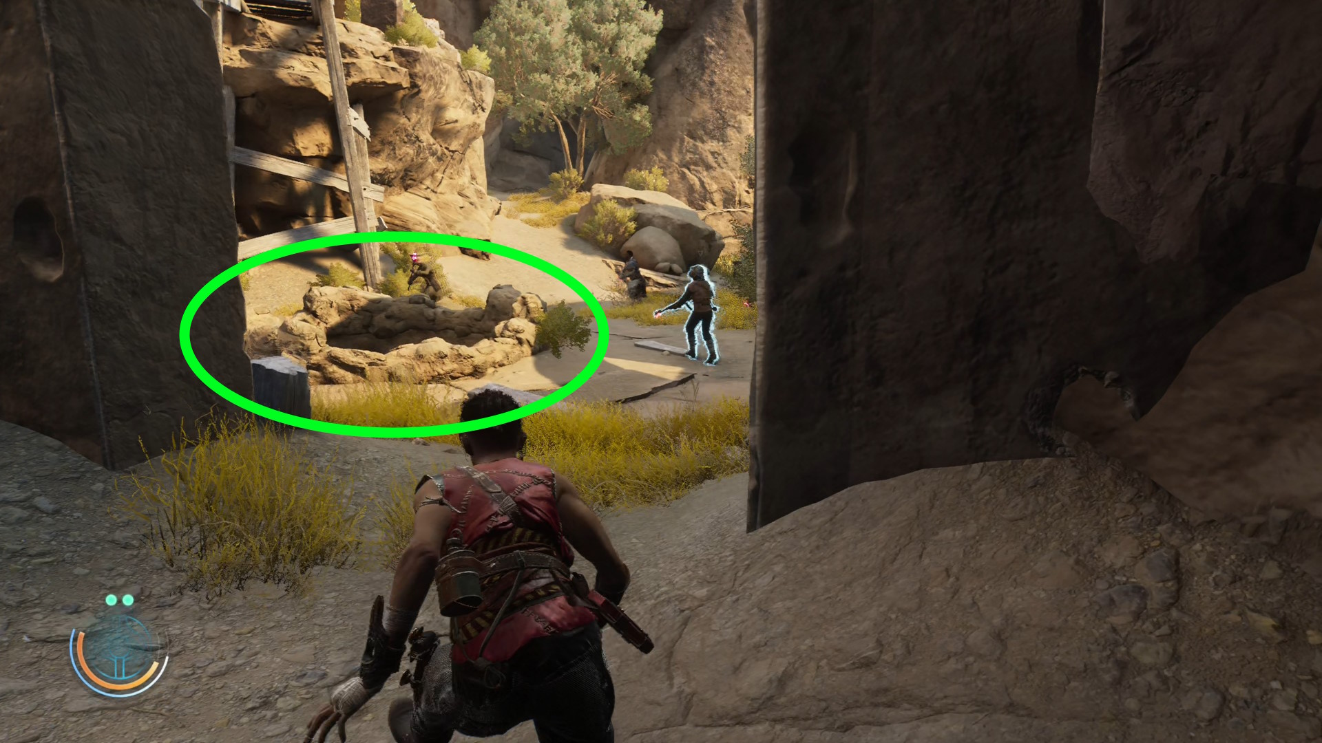 • 下画像のところから見て、古井戸の向こう側にいるとギアヘッドから攻撃されるので、できるだけ古井戸の手前で戦うこと