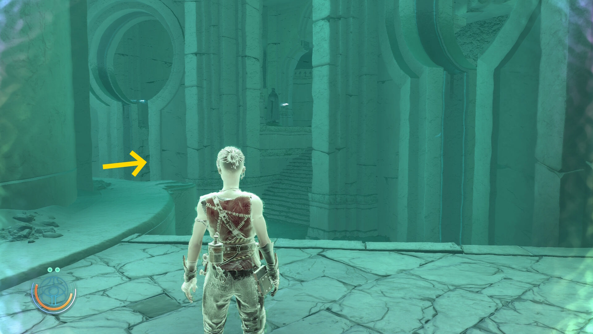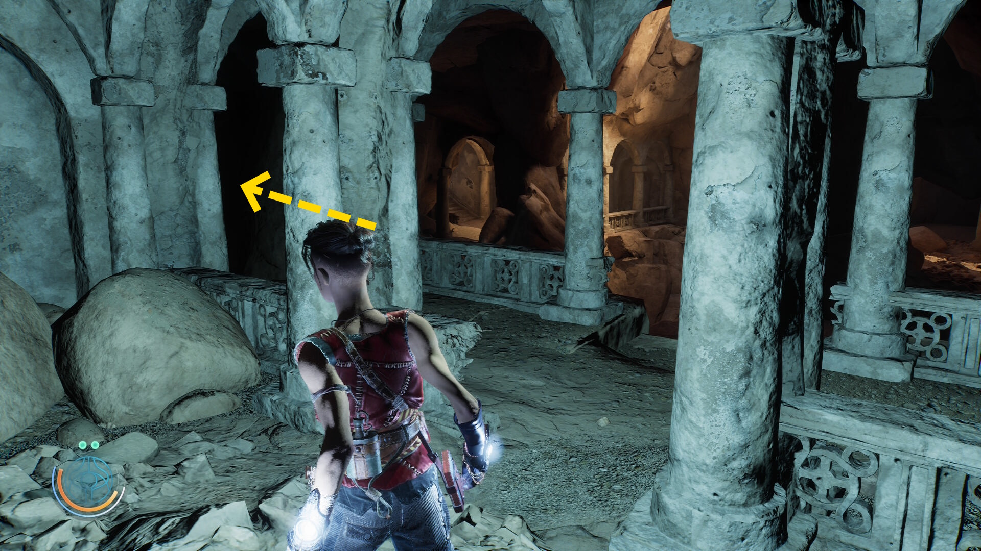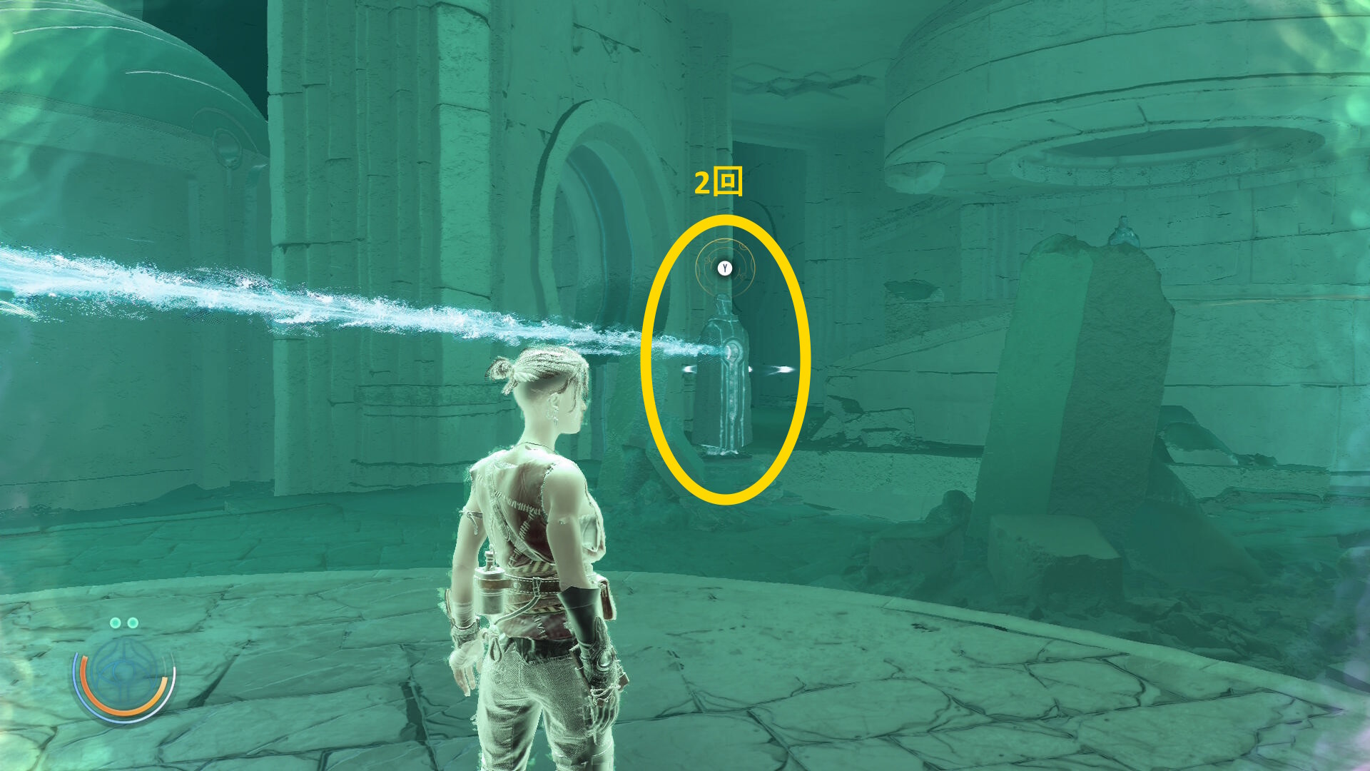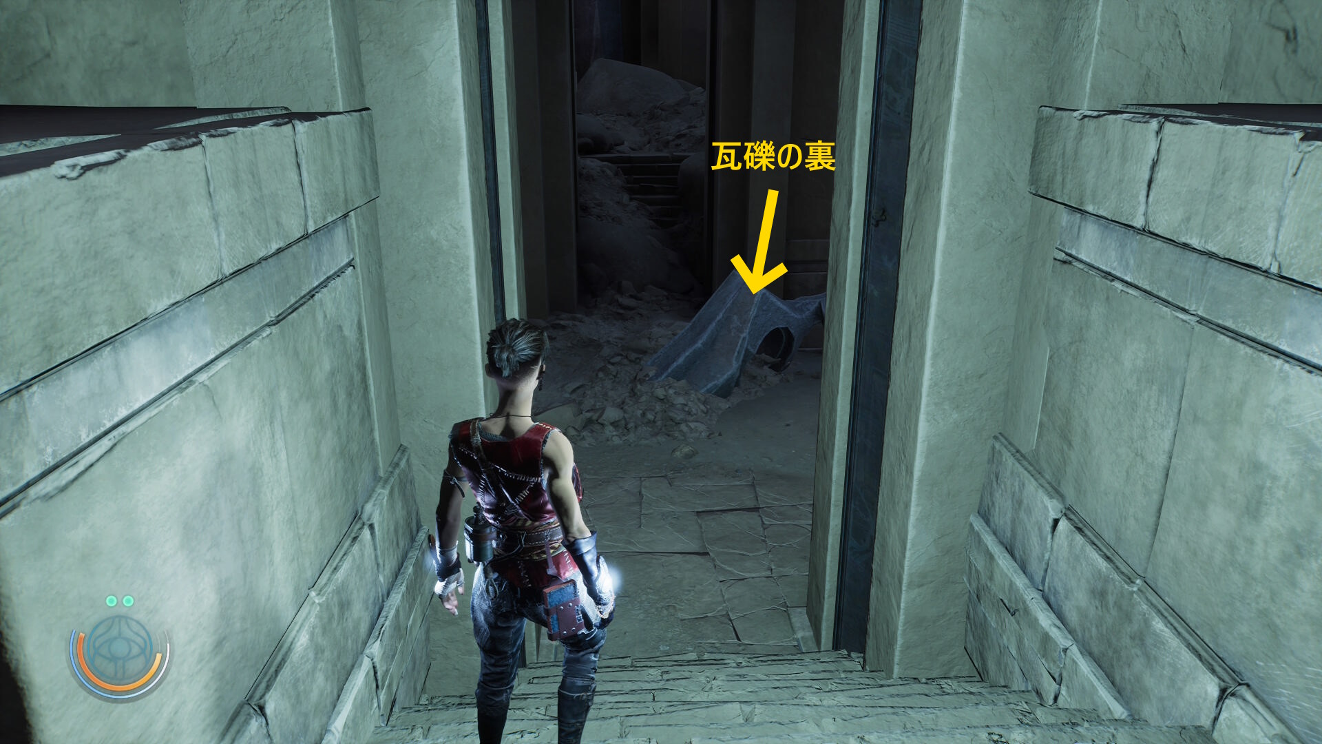 • 崩れた柱をしゃがみ移動で抜け、左折