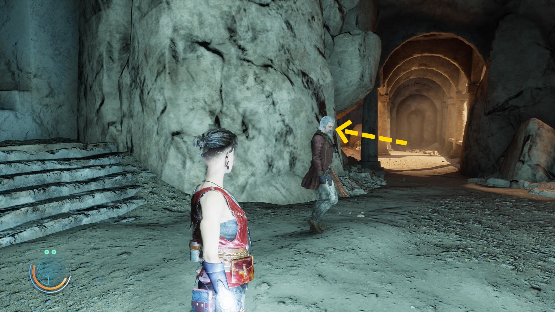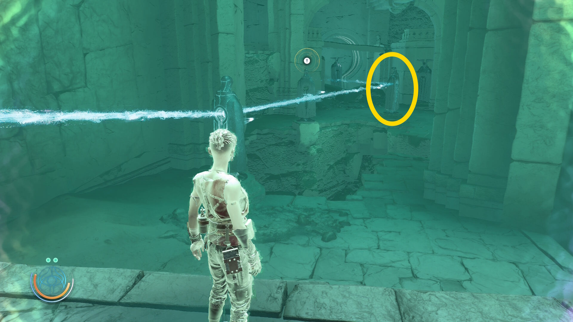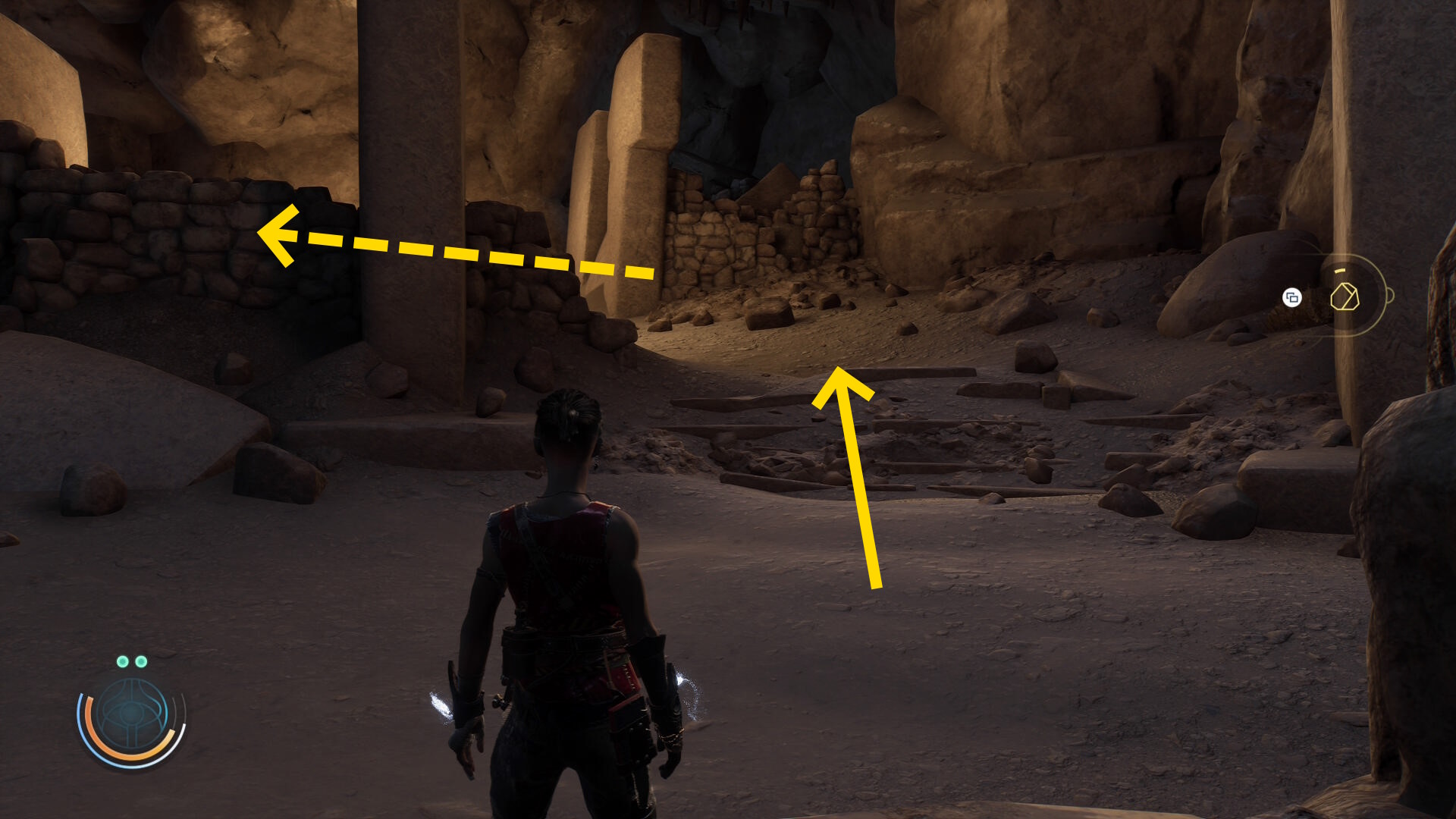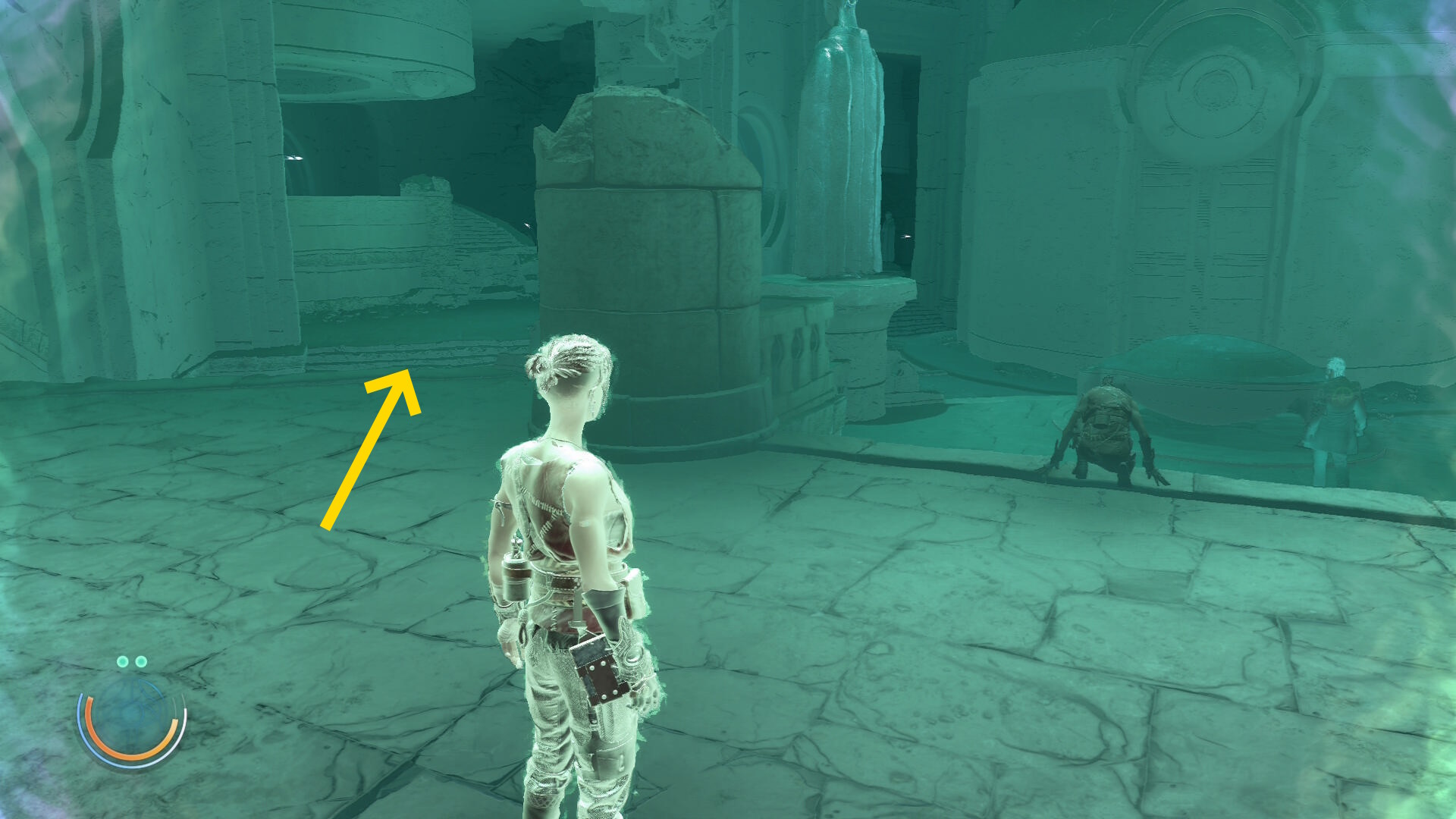 • 崩れた柱をしゃがみ移動で抜け、左折