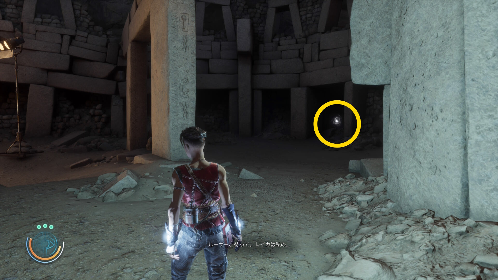• アノマリーを回収後、右後ろを向き、暗い通路を進む