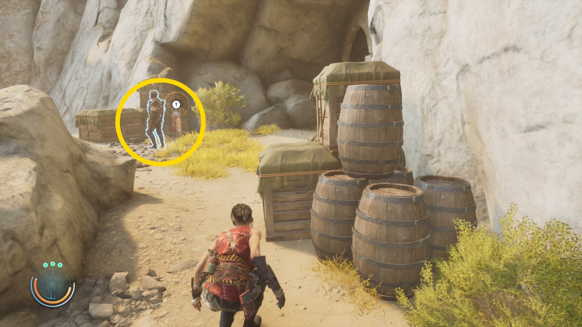 • まずは画面奥の古井戸まで進み、ハーネスブルーザー以外の敵を古井戸に落としていく
