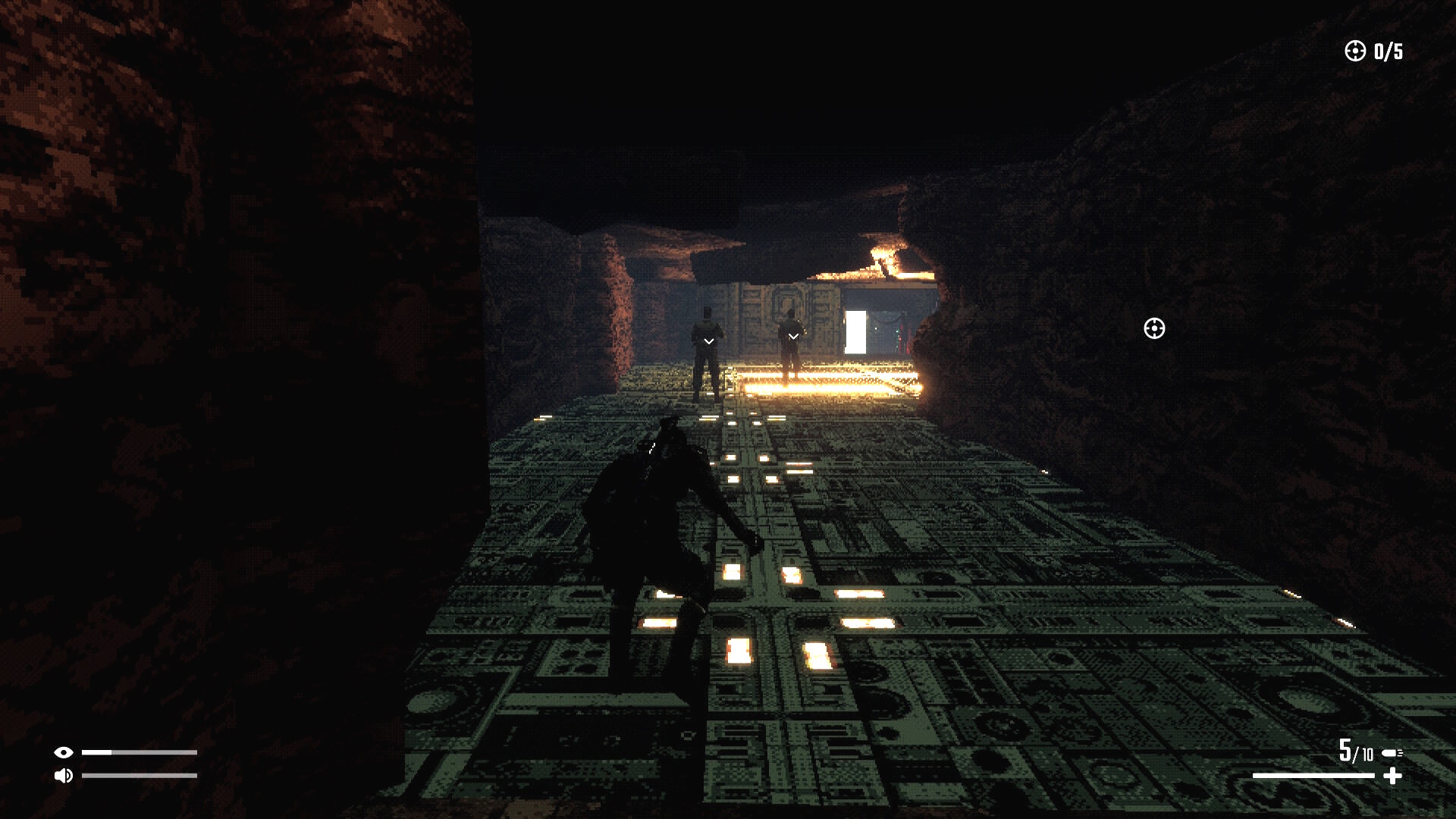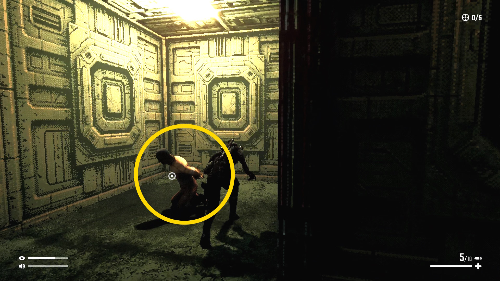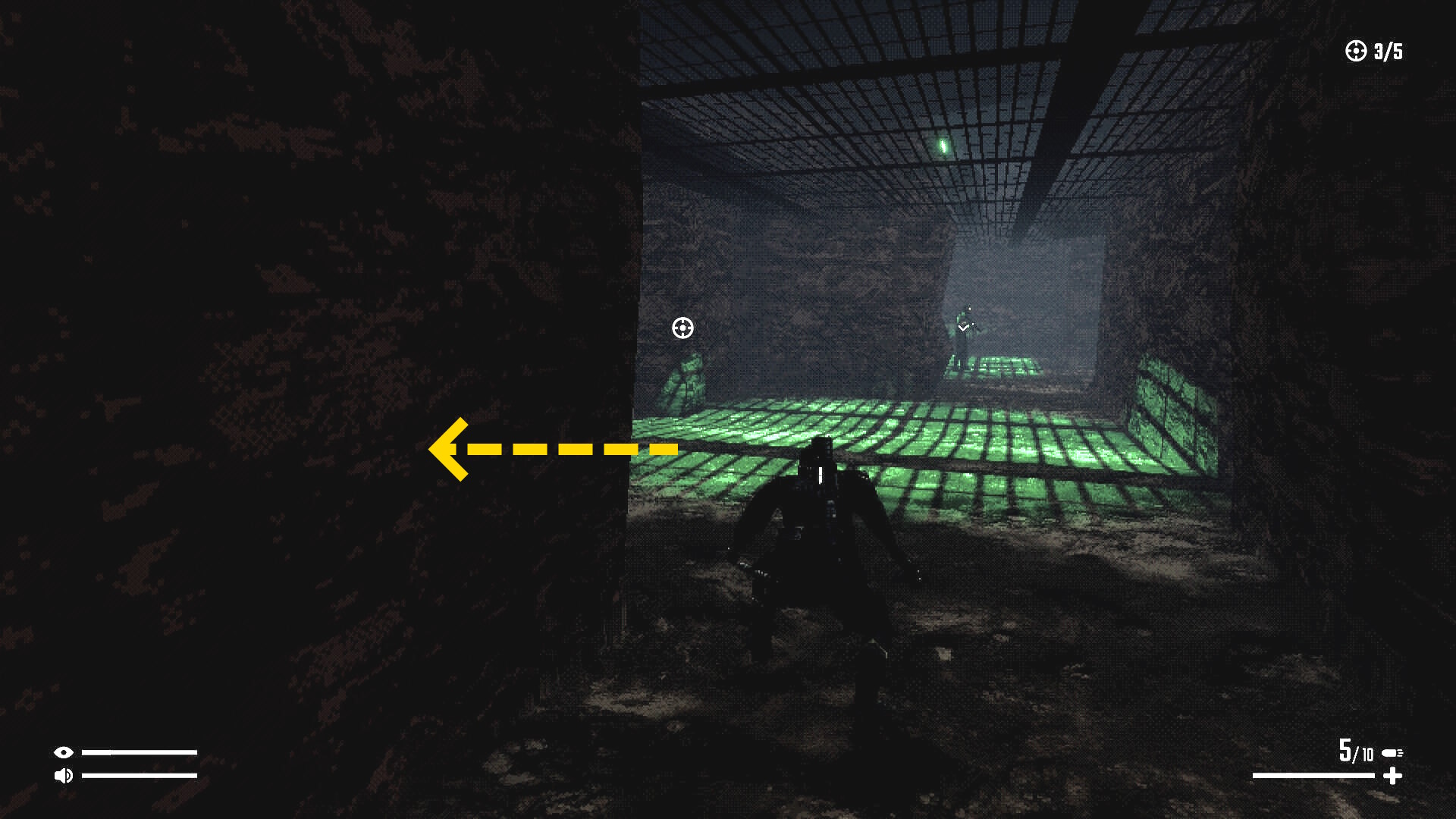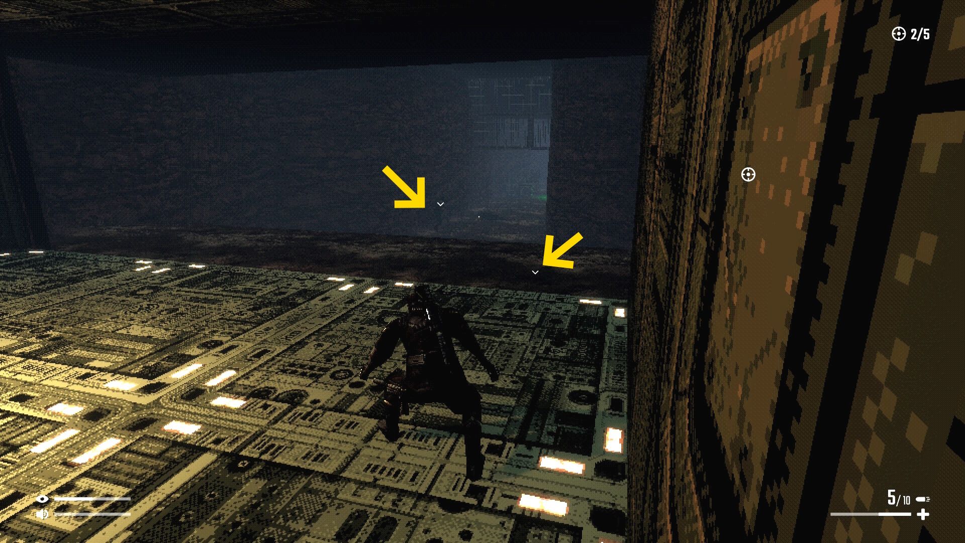 - 右壁に沿ってゆっくり進み、背後に回り込んでキル