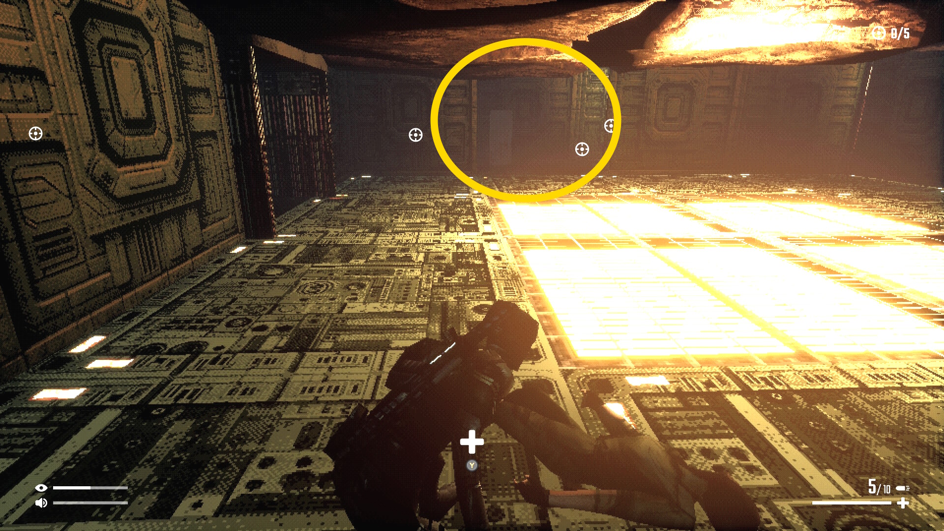- もし見つかった場合は開口部をくぐって向こう側に戻る(アーマーは追跡がしつこいのでターゲット(4/5)がいた辺りまで戻ってやりすごそう)
