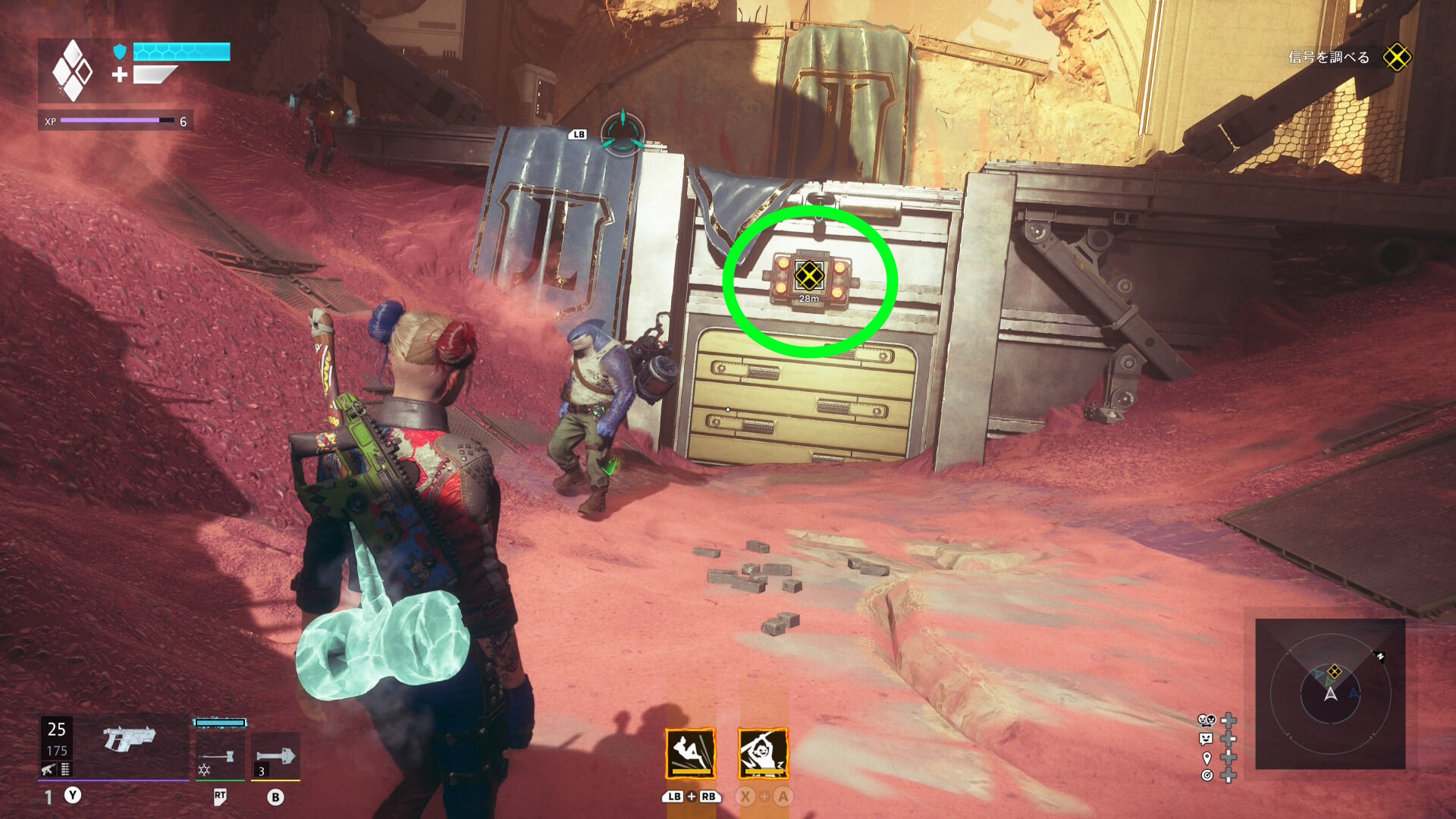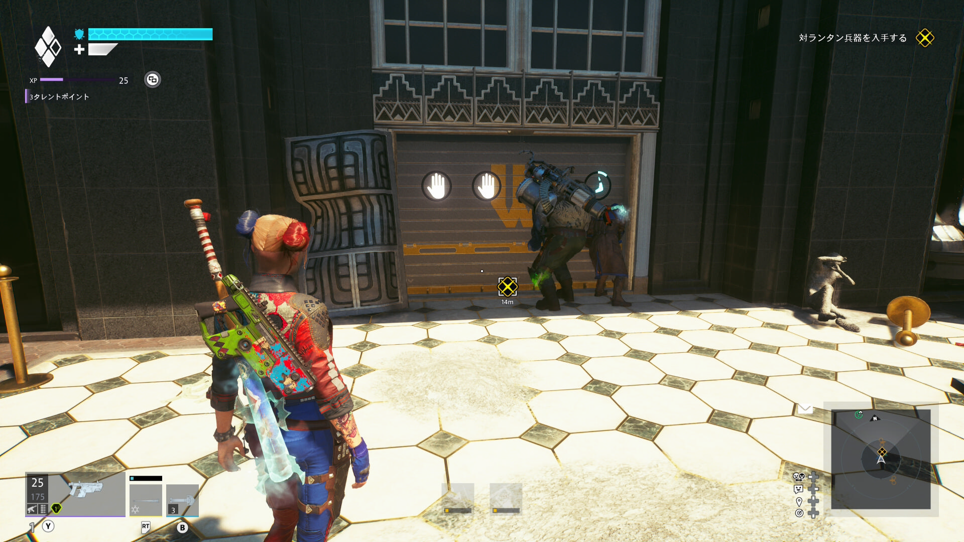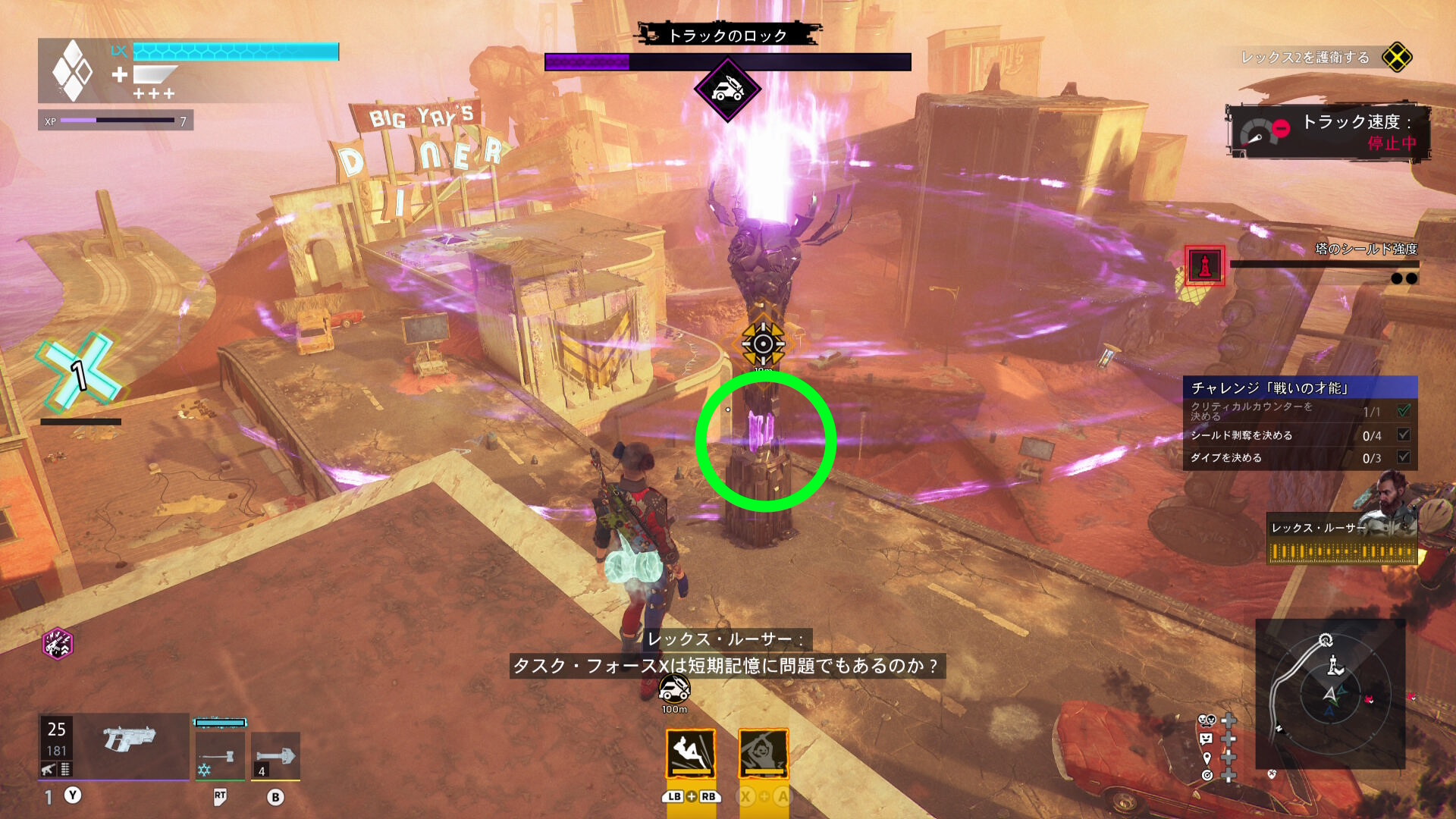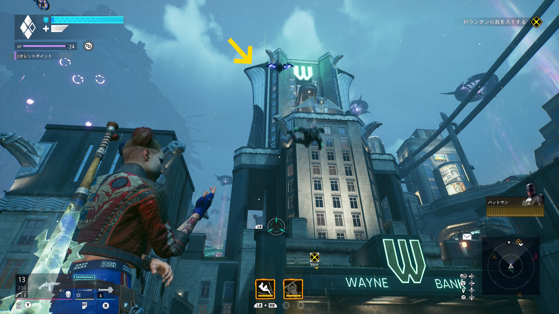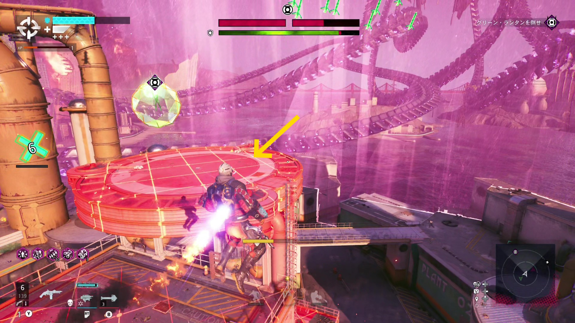巨大化したグリーン・ランタンの挙動バグ バグというほどではないが、巨大化したグリーン・ランタンがガトリングガンをぶっ放さず、デッドショットの周囲をぐるぐる移動するだけのことがある この場合、出現するロケットランチャーを破壊し続けながら、胸のランタンマークを攻撃するとダメージを与えられる バリアゲージがゼロにし、胸のマークを撃ってもダメージが与えられないこともある