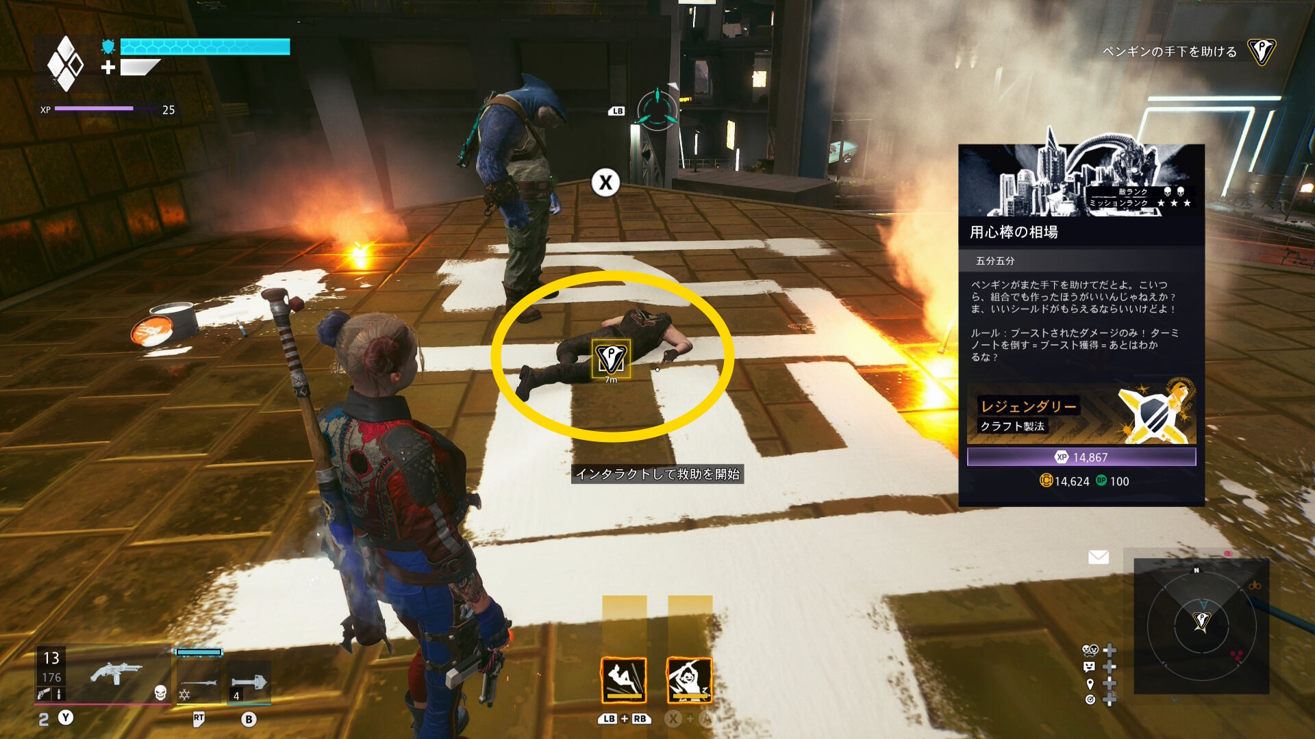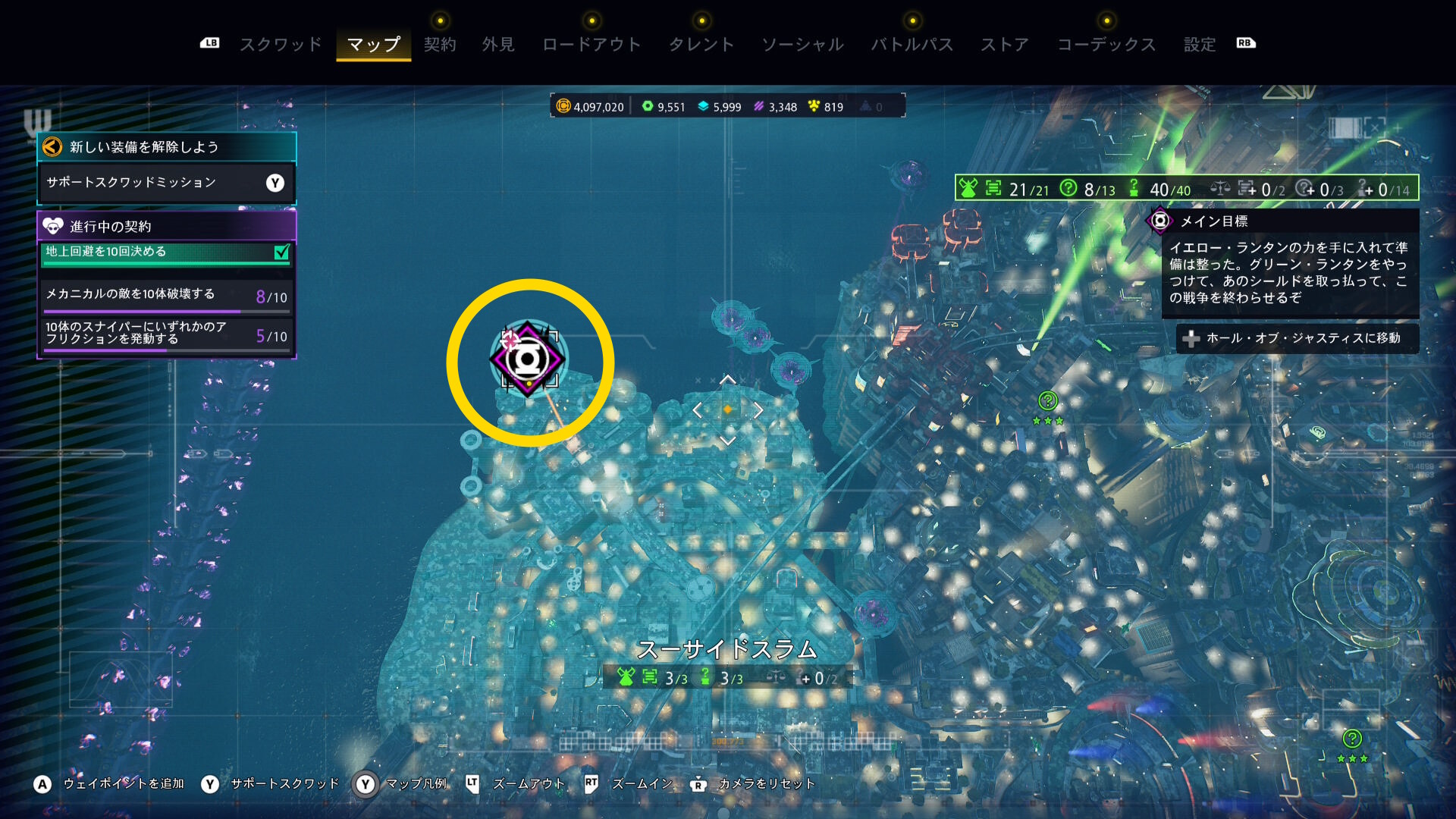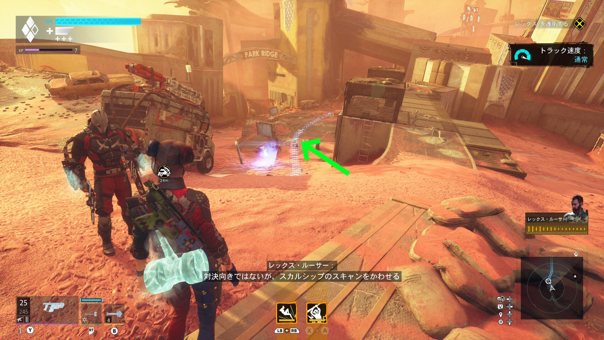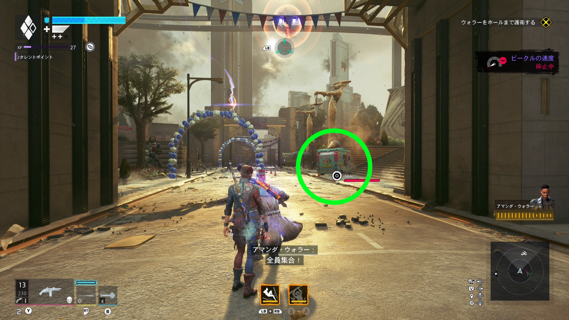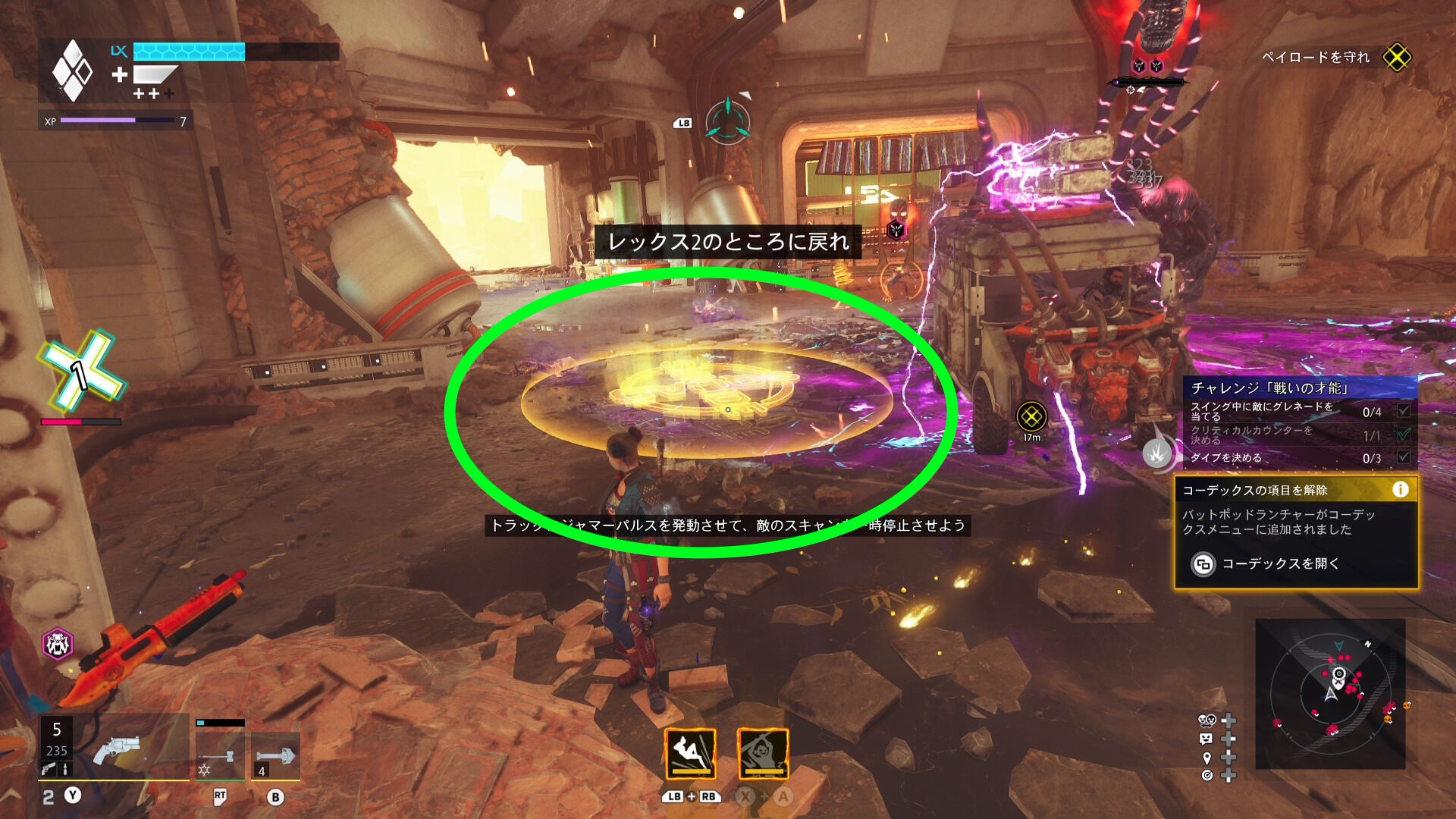 巨大化したグリーン・ランタンの挙動バグ バグというほどではないが、巨大化したグリーン・ランタンがガトリングガンをぶっ放さず、デッドショットの周囲をぐるぐる移動するだけのことがある この場合、出現するロケットランチャーを破壊し続けながら、胸のランタンマークを攻撃するとダメージを与えられる バリアゲージがゼロにし、胸のマークを撃ってもダメージが与えられないこともある