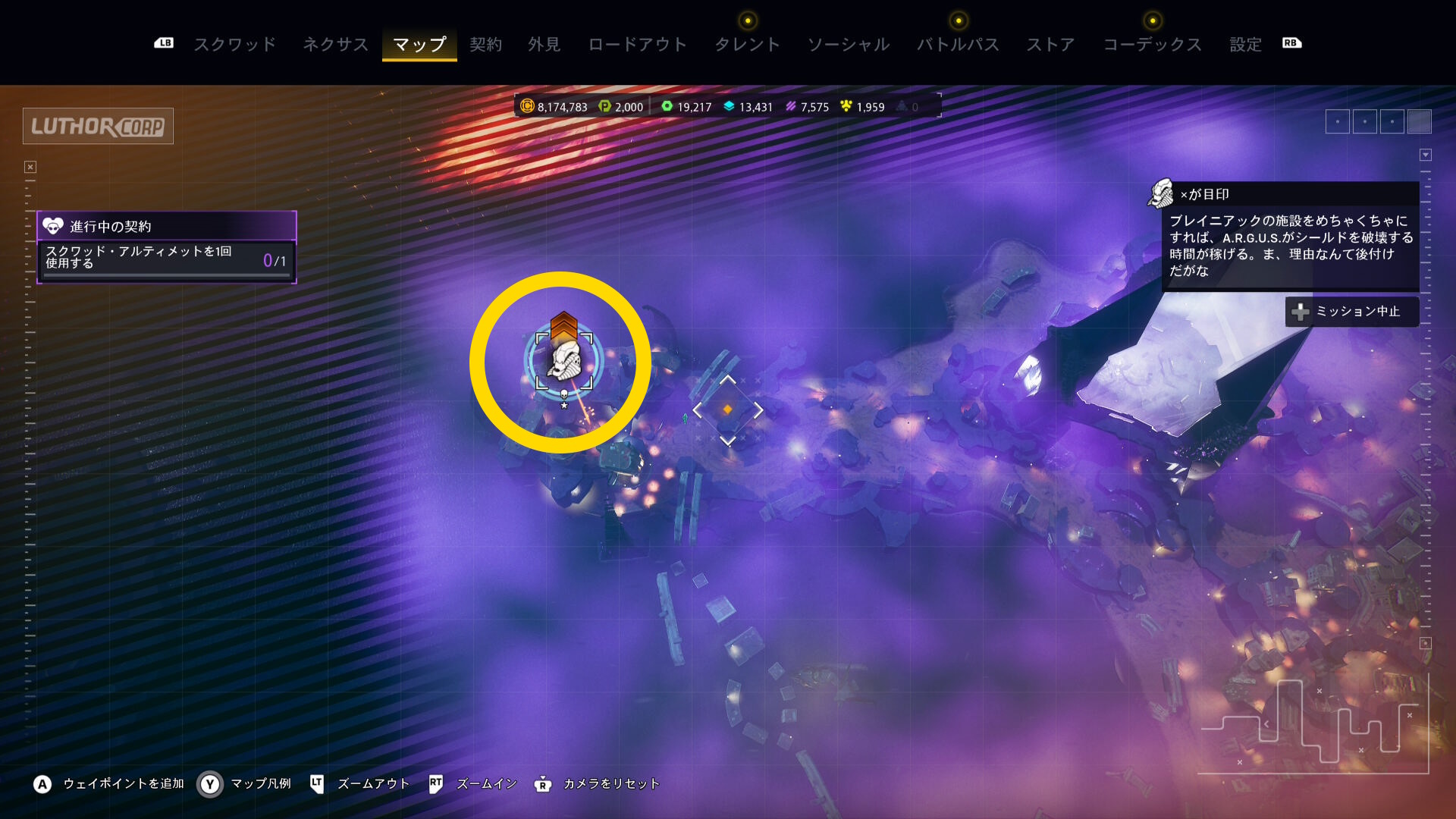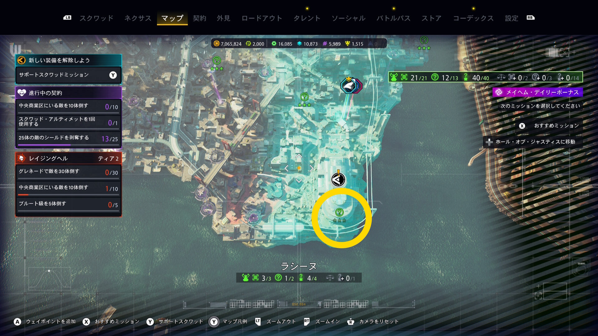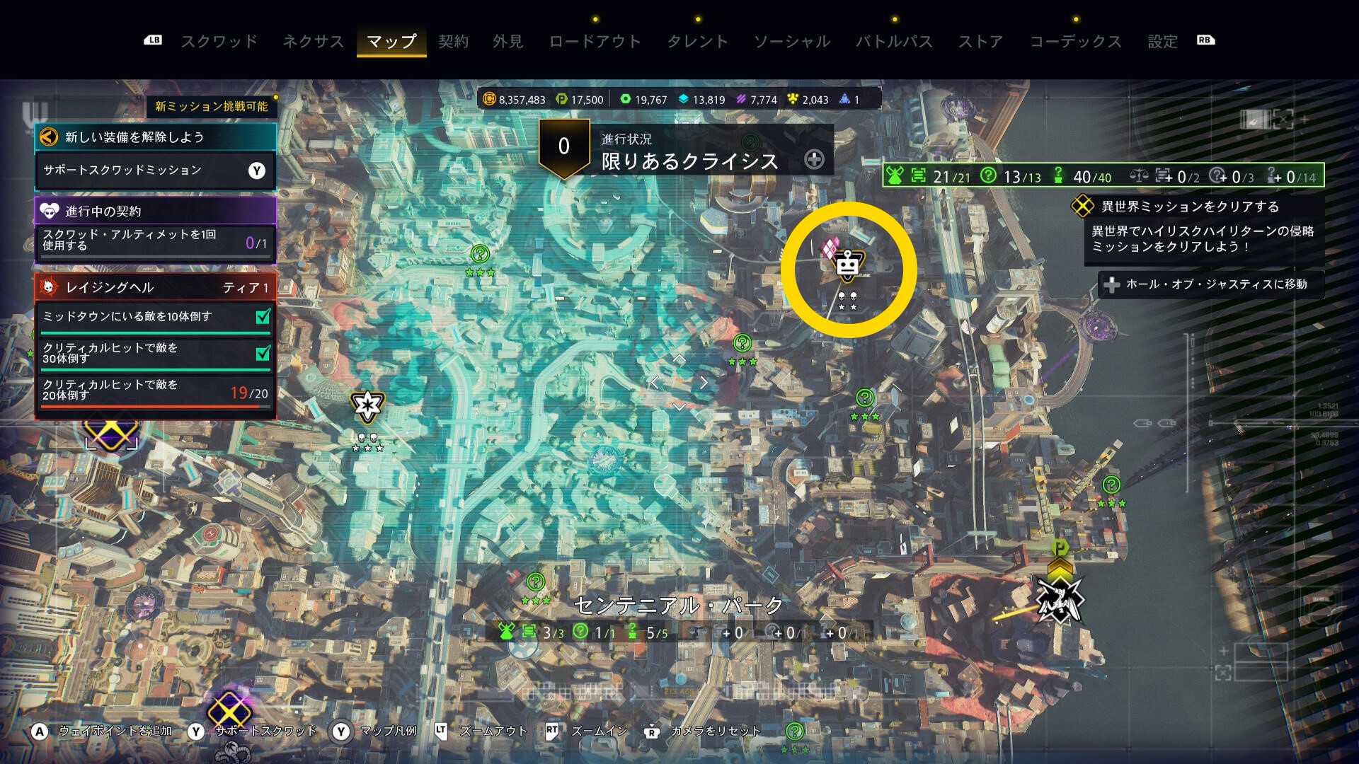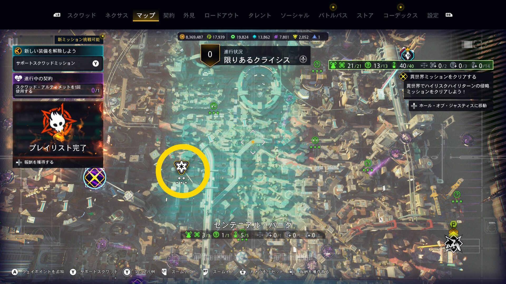 • マップを開くとサポートスクワッドミッションとリドラーの AR チャレンジが出現しているが、現状はロックされているのでホール・オブ・ジャスティスに戻ろう