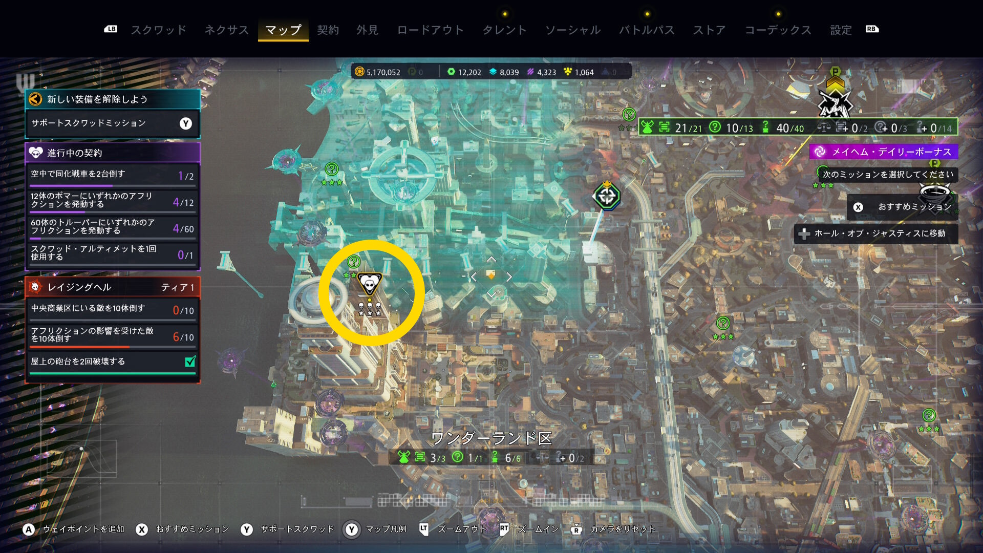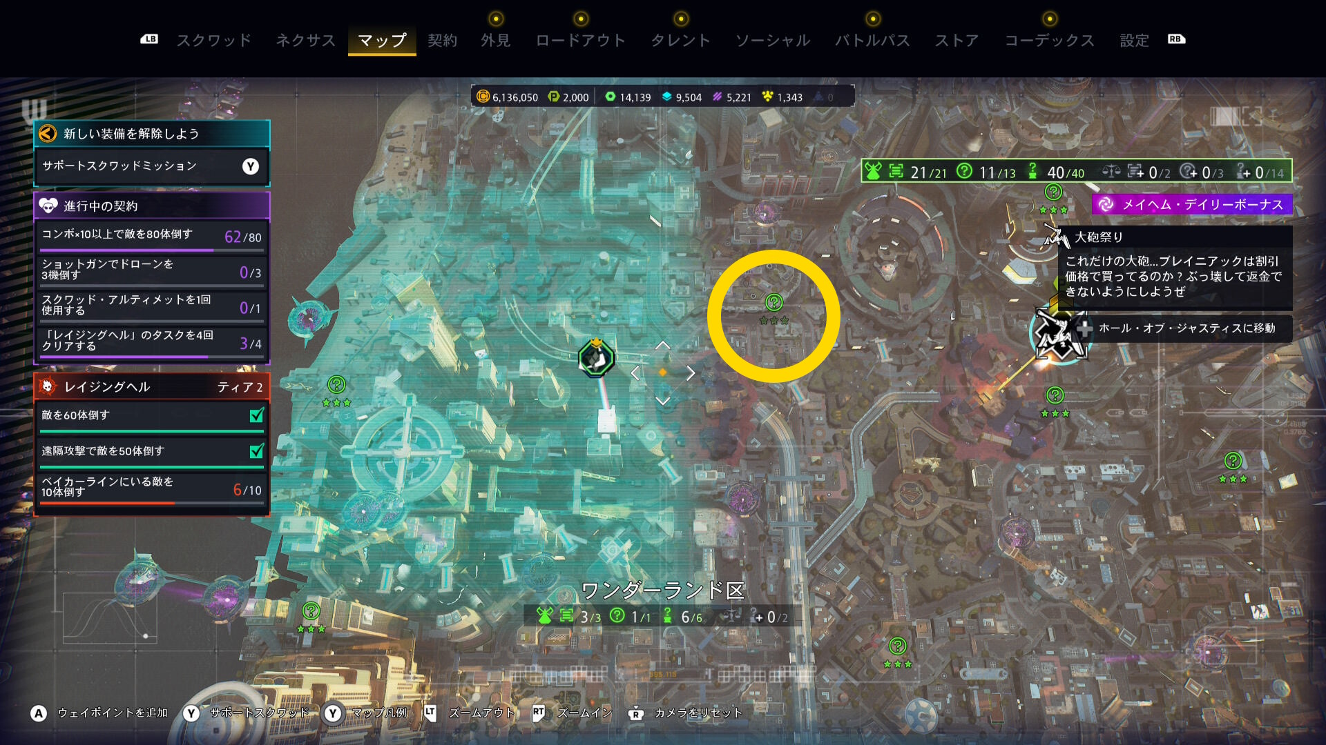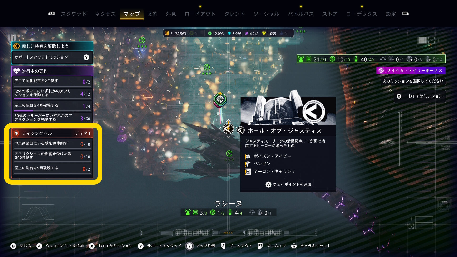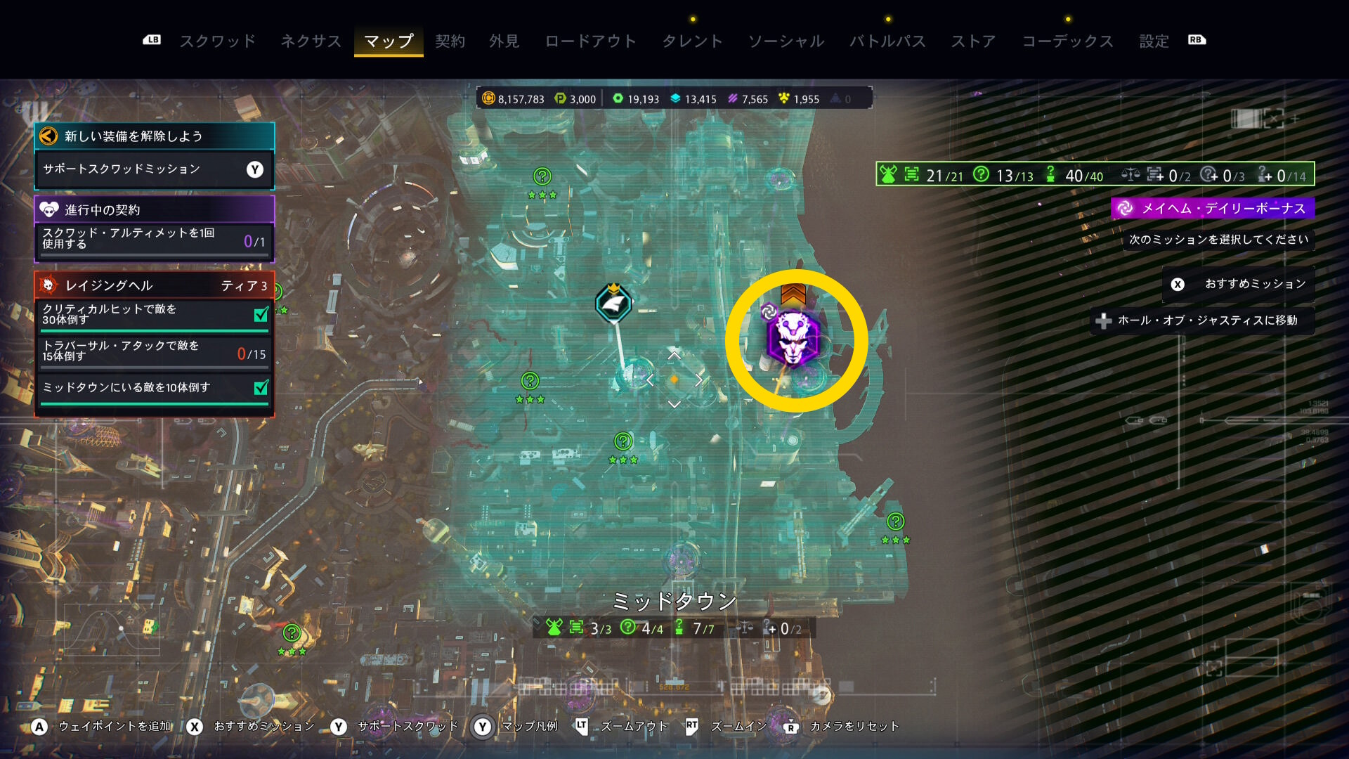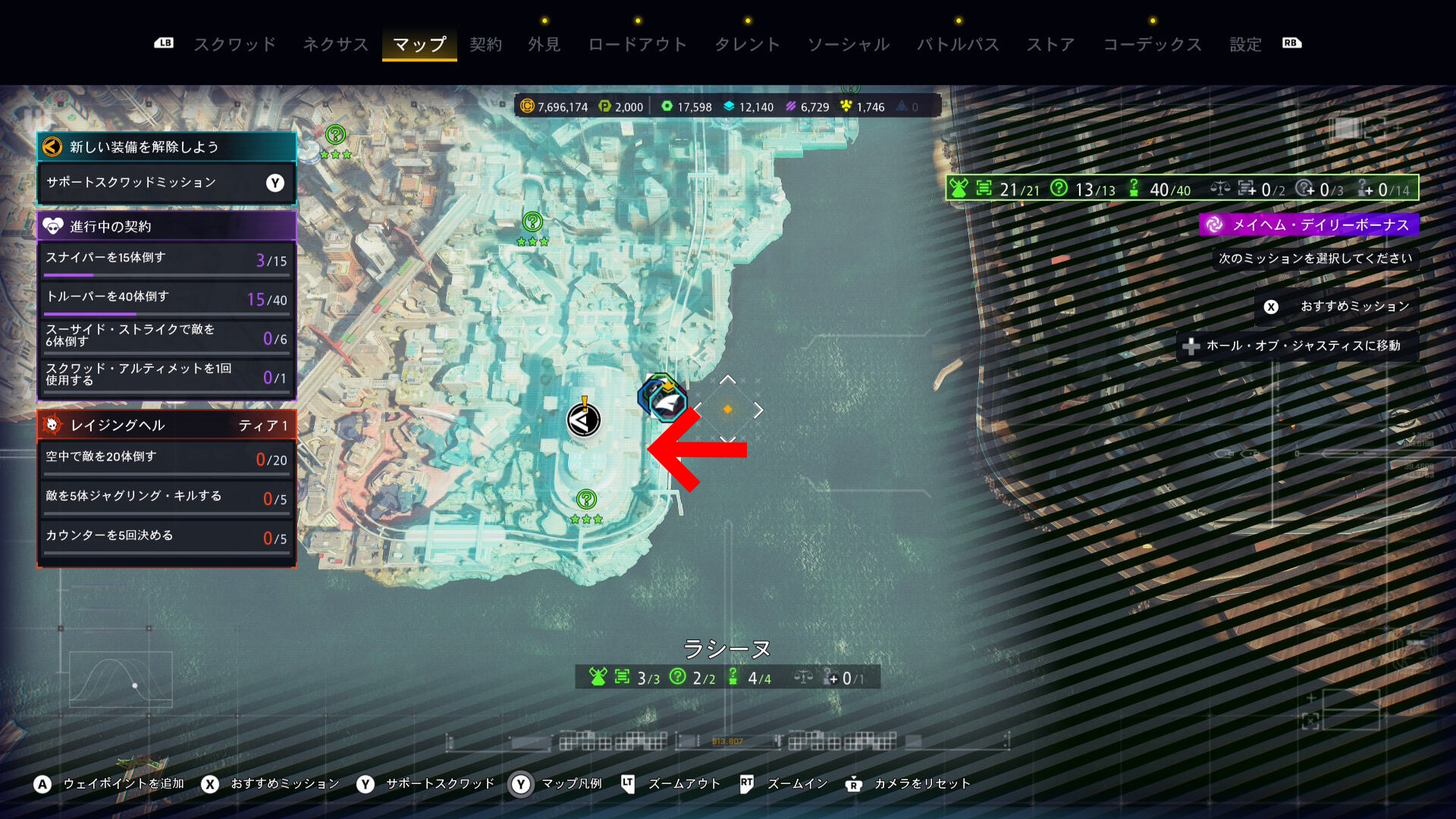 • マップを開くとサポートスクワッドミッションとリドラーの AR チャレンジが出現しているが、現状はロックされているのでホール・オブ・ジャスティスに戻ろう