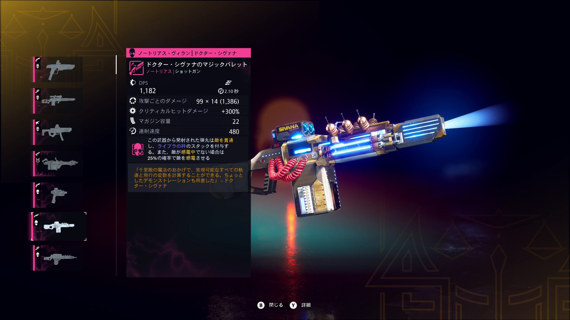 • エピソード8でやることは追加武器 ”ノートリアス・ヴィラン|ドクター・シヴァナのマジックバレット(ショットガン)” を獲得すること