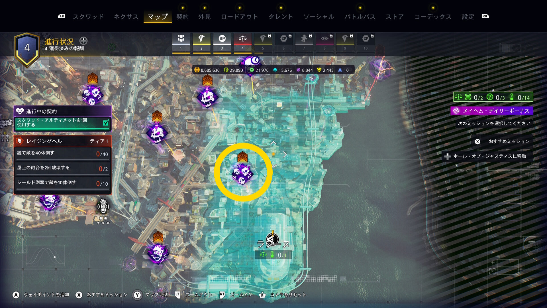 • ミッション中でもレイジングヘルの暗殺部隊は構わず出現するため、もう少しで完了できそうな場合はミッション開始前にプレイリストを終えておくことを推奨