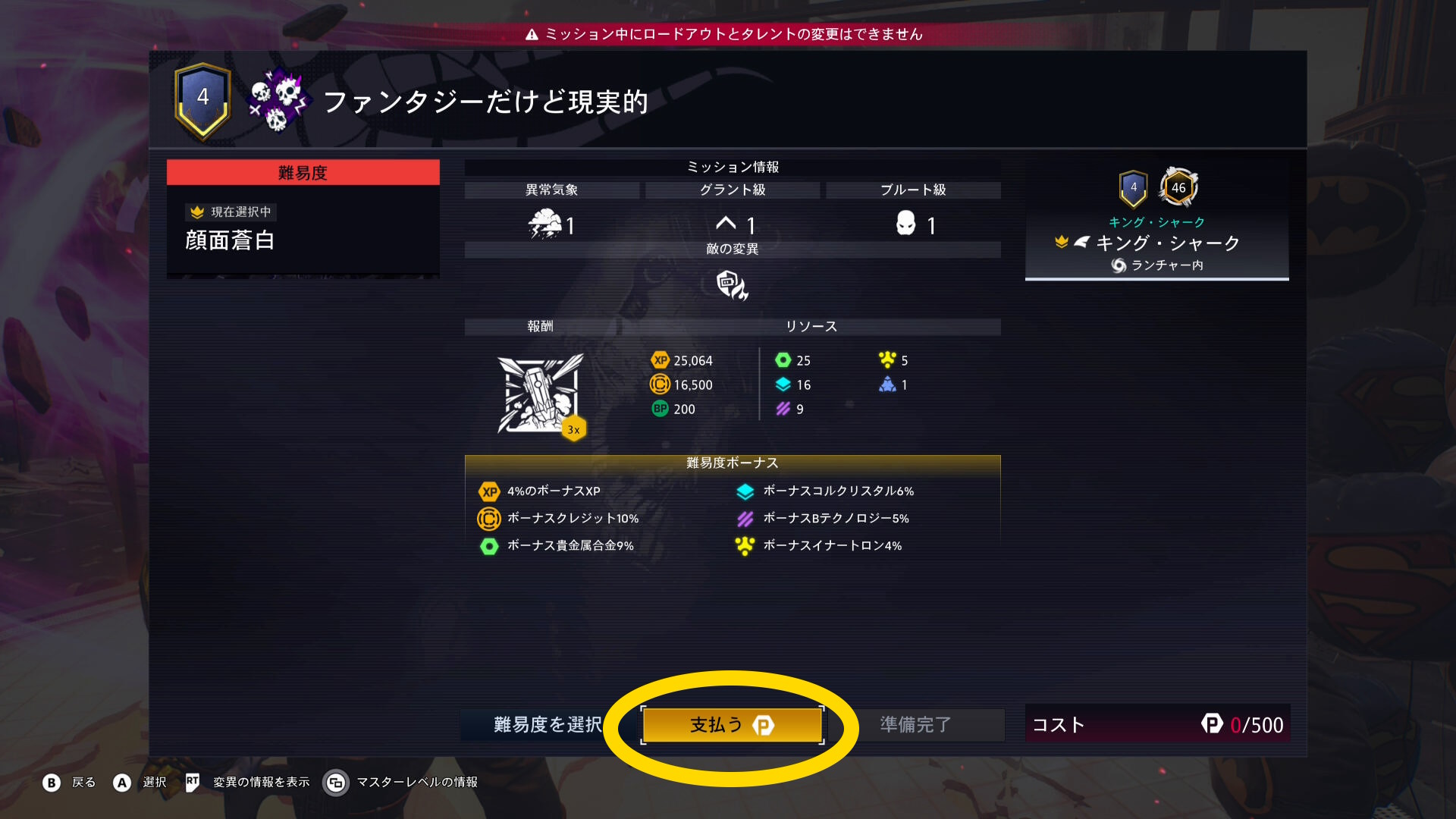 • なお、この難易度が適用されるのはメトロポリスのみであり、”侵略ミッション” には関係ない