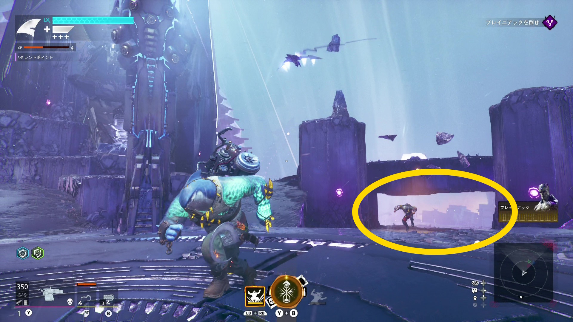 • 最初に陣取った窪みに戻って対処し、その後に出現したブレイニアックにカウンターショットを与えてダメージを与えていく……の繰り返し