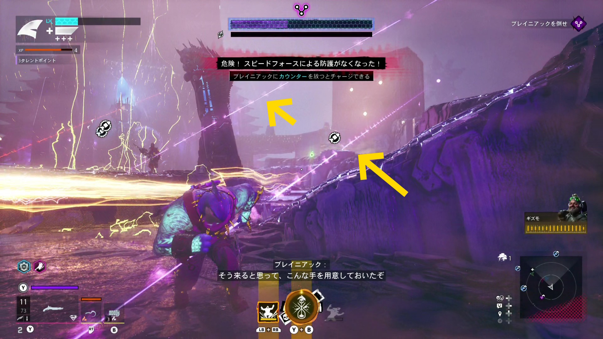 • ブレイニアックの周囲ある黄色のエネルギーに触れるとダメージを受けるので注意