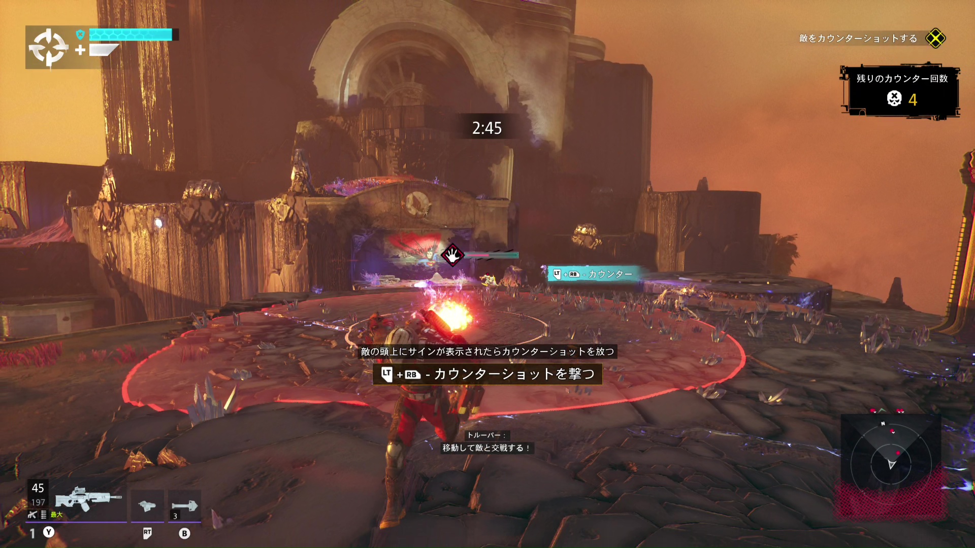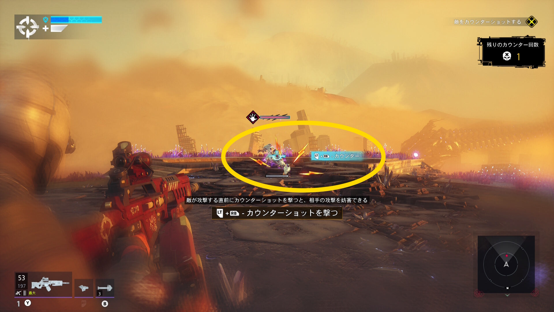 • 背後に敵が多数出現し、その中でサインを出す敵にカウンターショットを撃っていこう