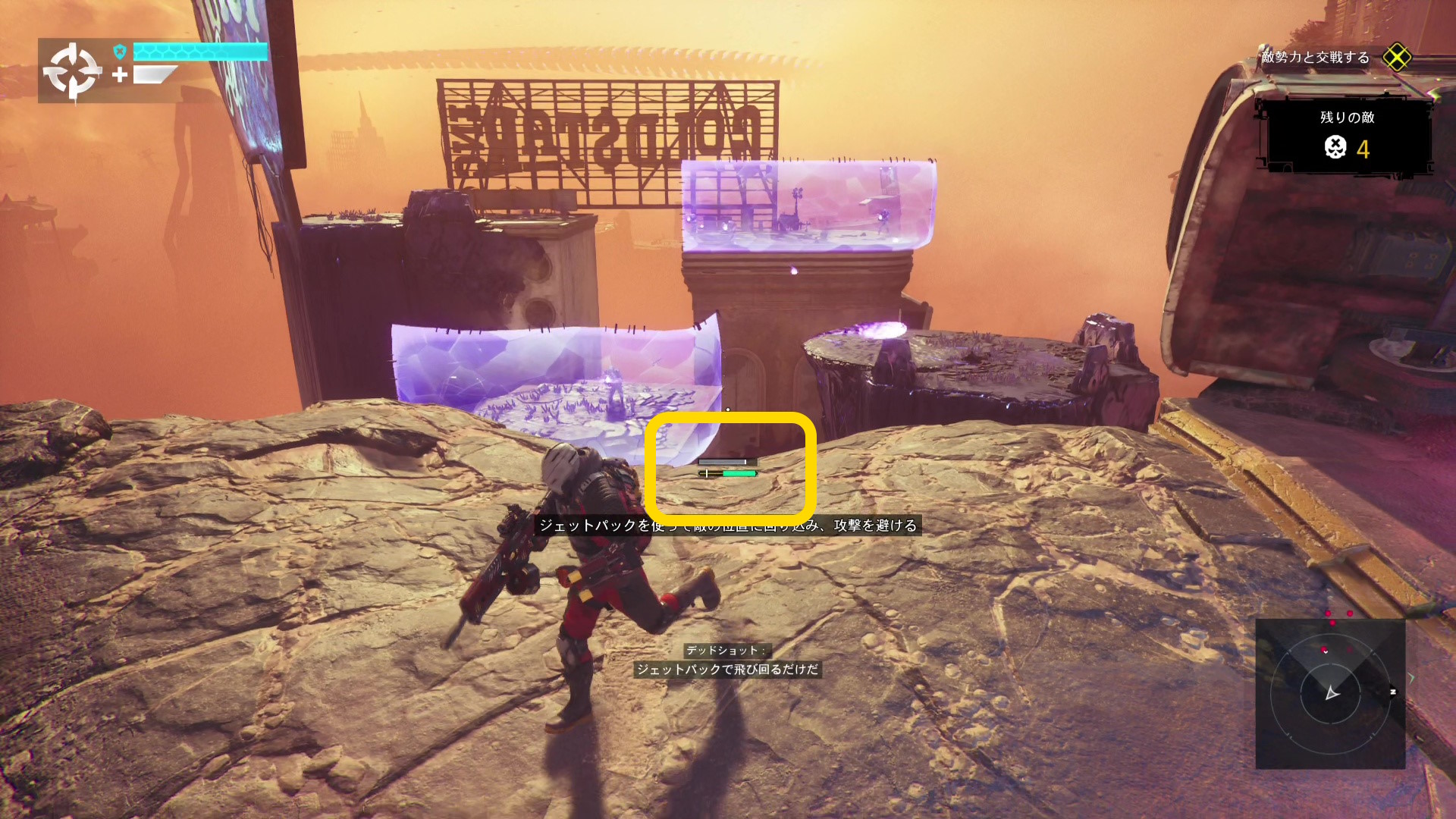 • 敵がいるところはシールドが張られているので、ジェットパックで回り込んで攻撃しよう