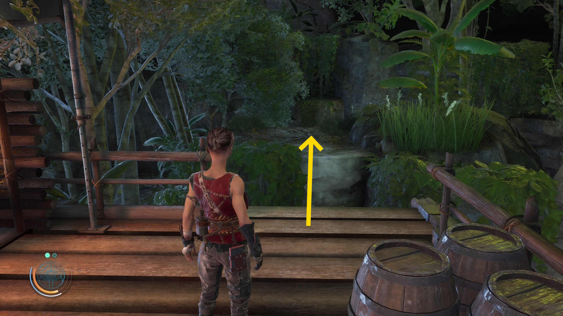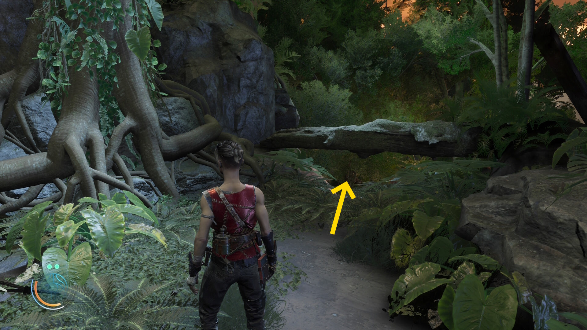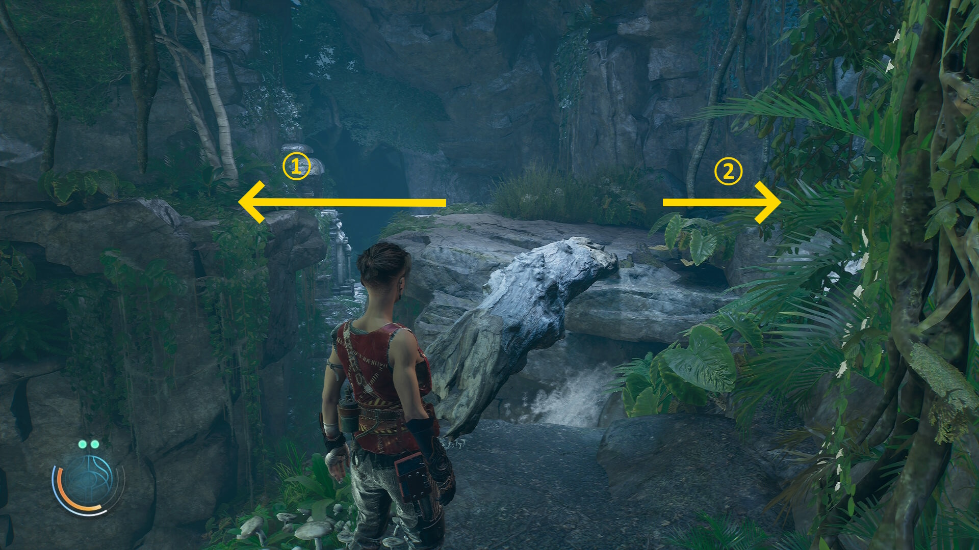 • 倒木の橋を渡ったあと、ルーサーについていきながらツタを登ったり、橋の下を移動したりする