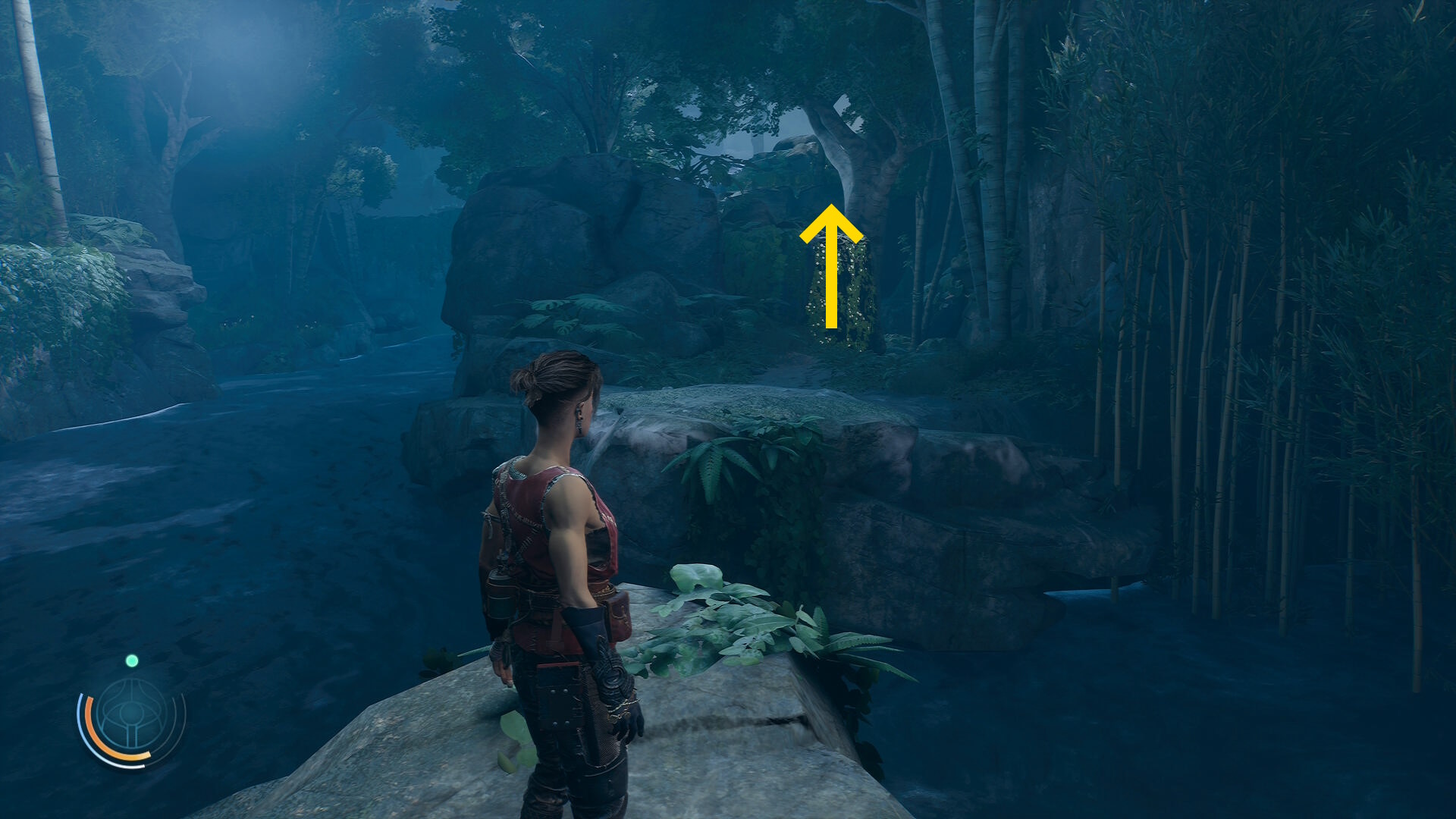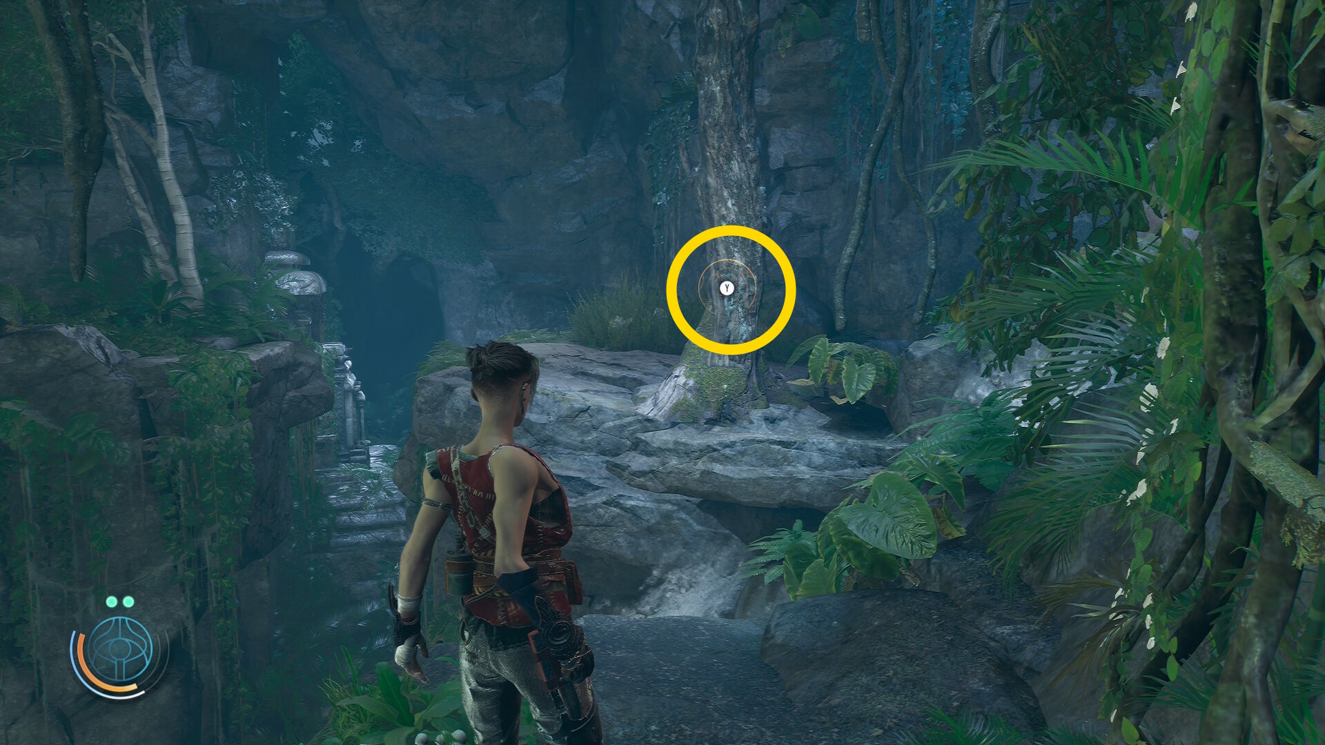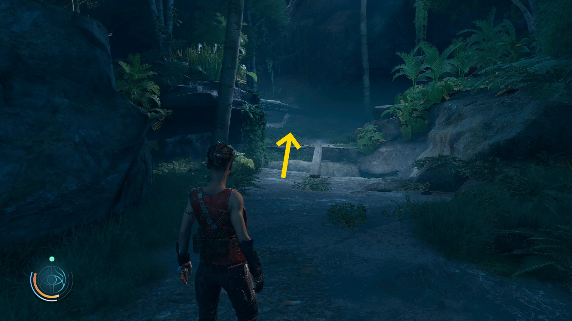 • 倒木の橋を渡ったあと、ルーサーについていきながらツタを登ったり、橋の下を移動したりする