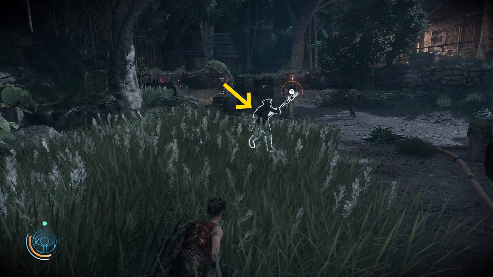 • 右奥の大きめの家屋で銃撃戦が行われているが、その周辺にいる敵らは関与していない(普通に巡回している笑)