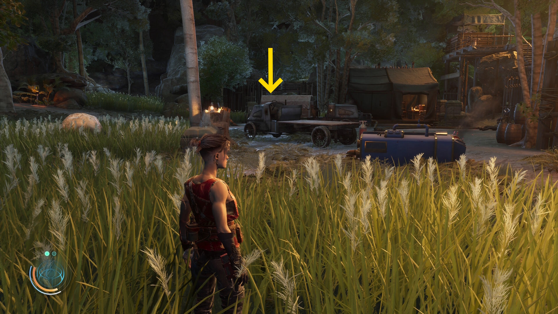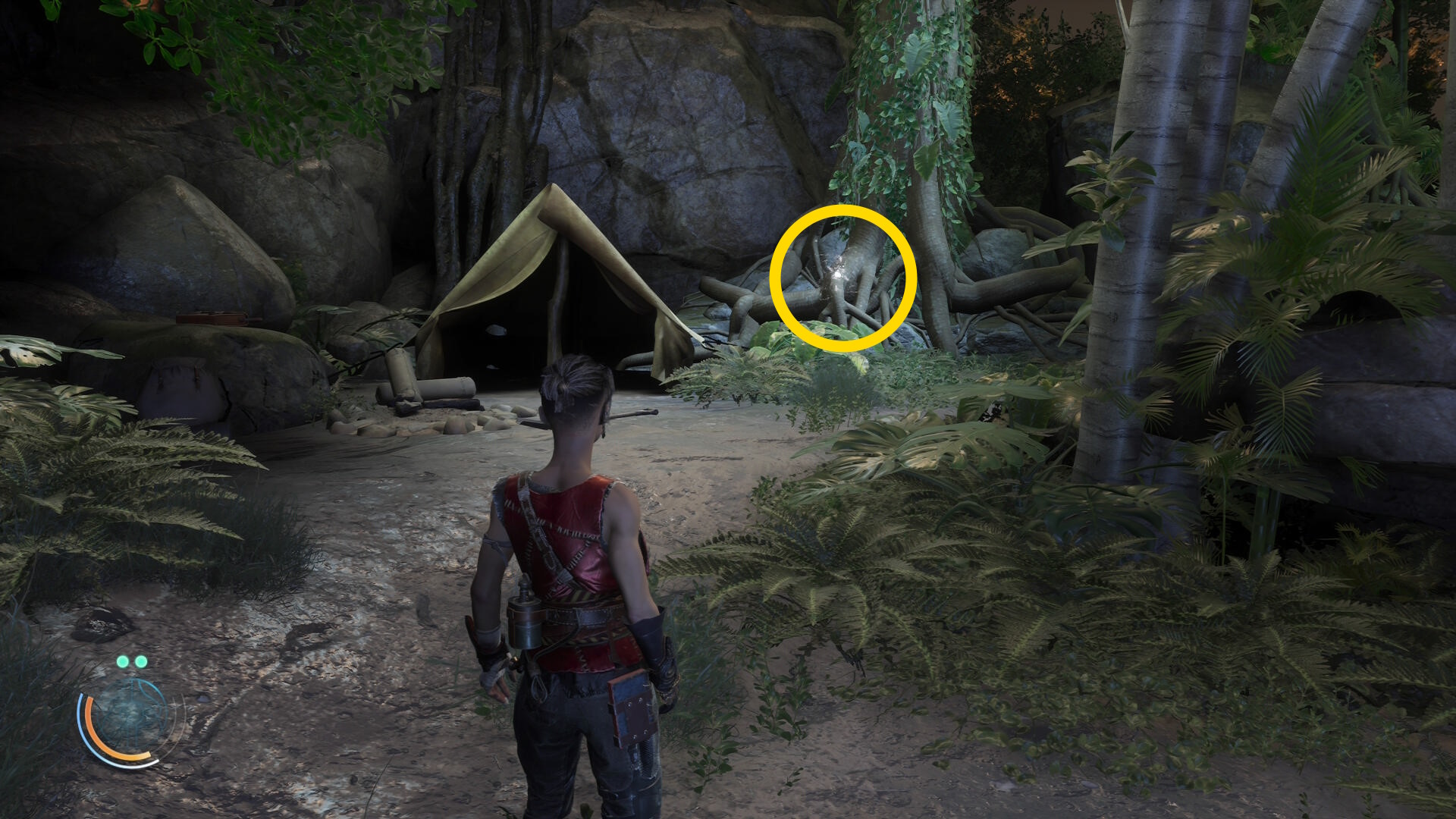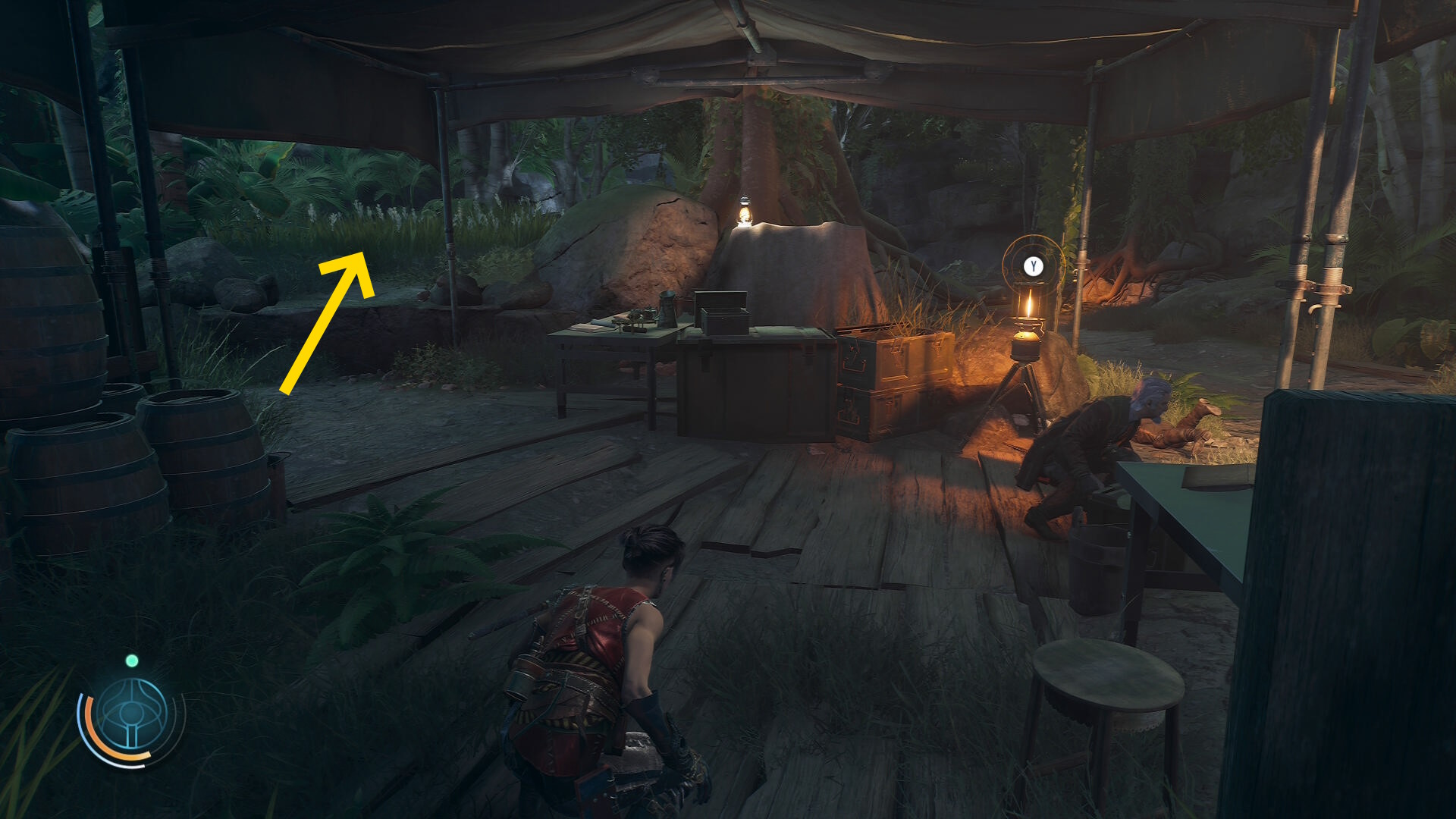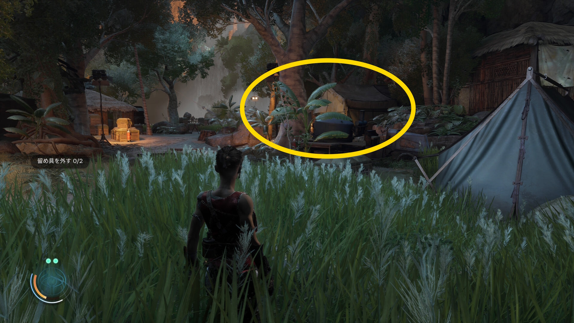 • ブルーザーらを倒した後、右前方にテントが見える(やや太めの木の裏にある)