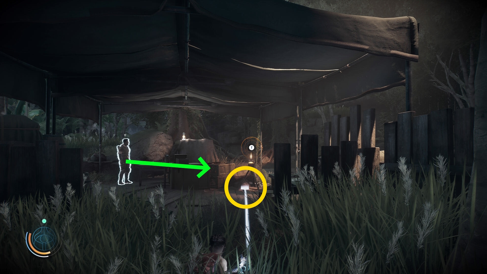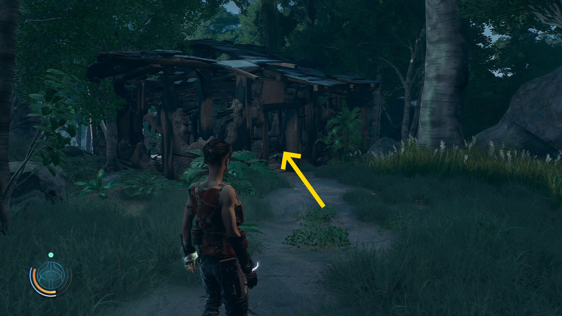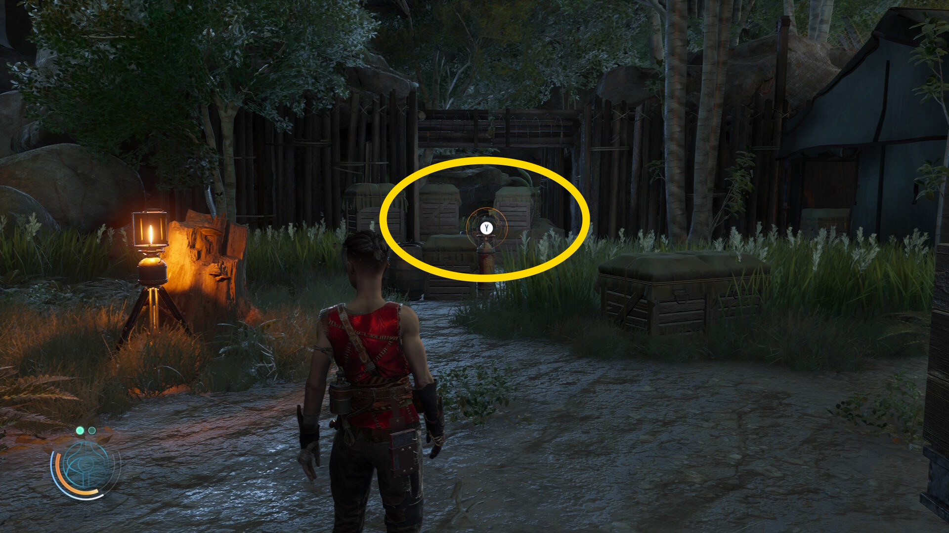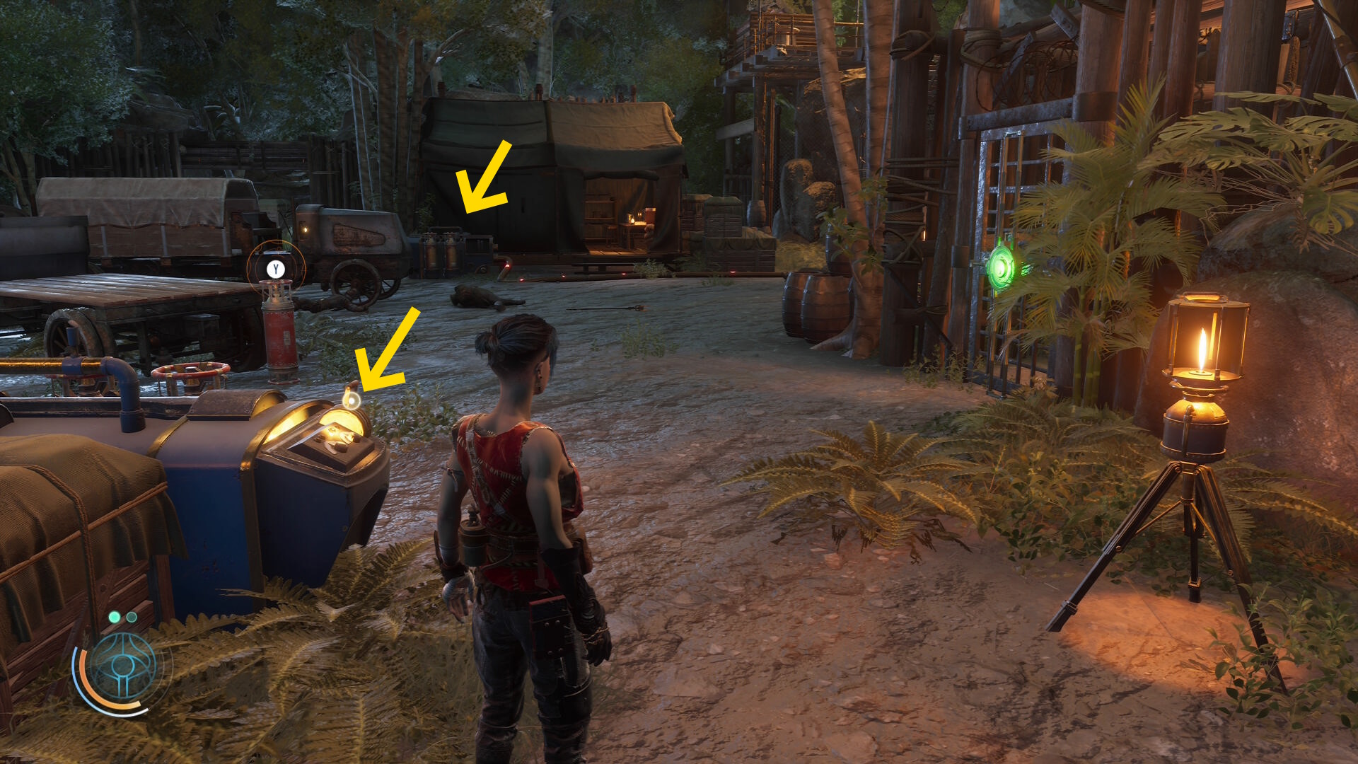 • ブルーザーらを倒した後、右前方にテントが見える(やや太めの木の裏にある)