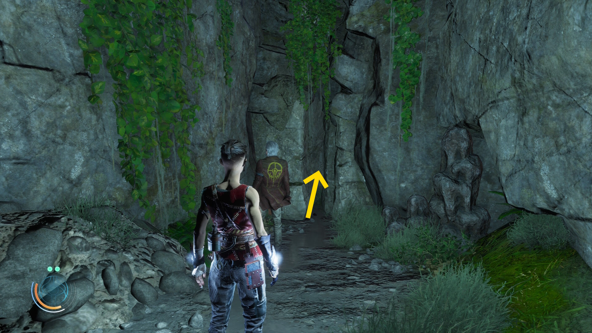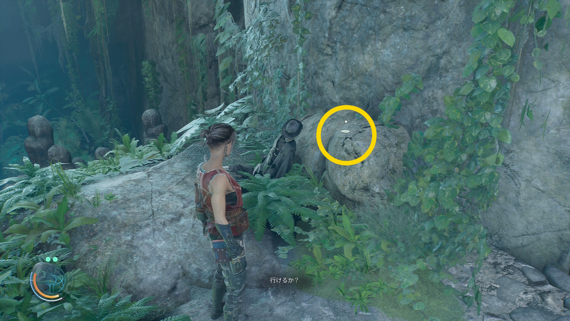 • 岩壁のツタが見えるので、これを登っていく