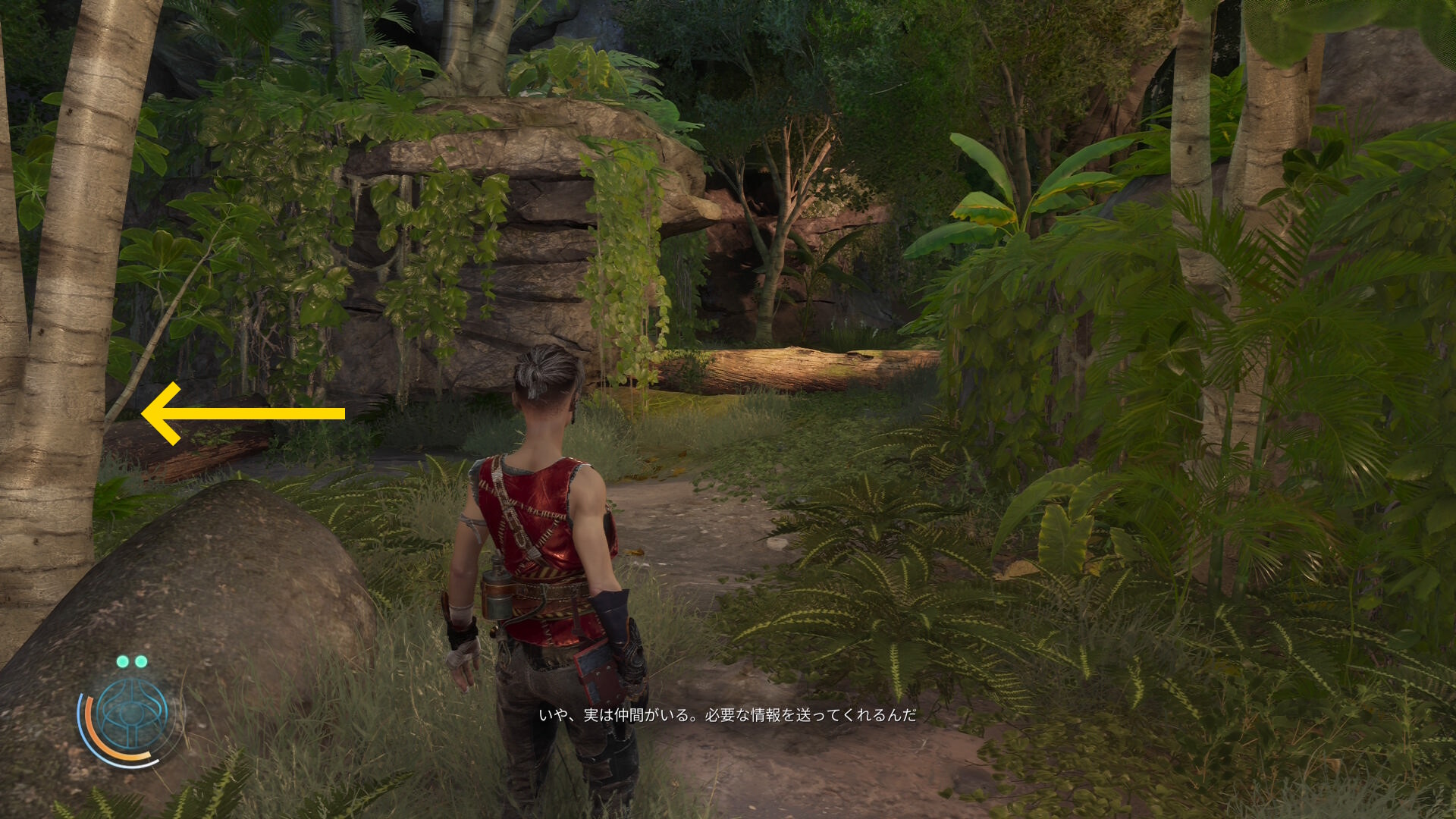 • ルーサーは奥の倒木を飛び越えていくが、ハルーナはその手前を左折する