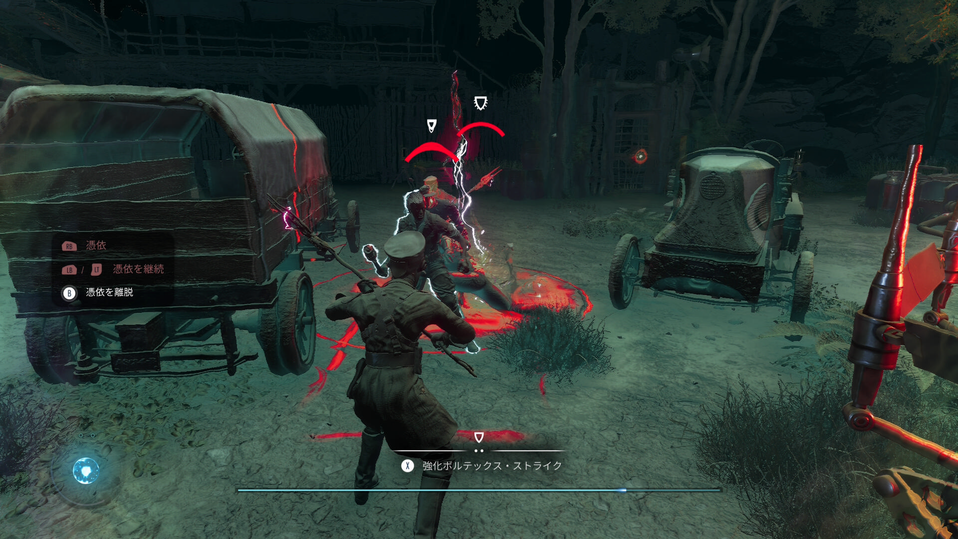 • 草むらの中からブルーザーに憑依する