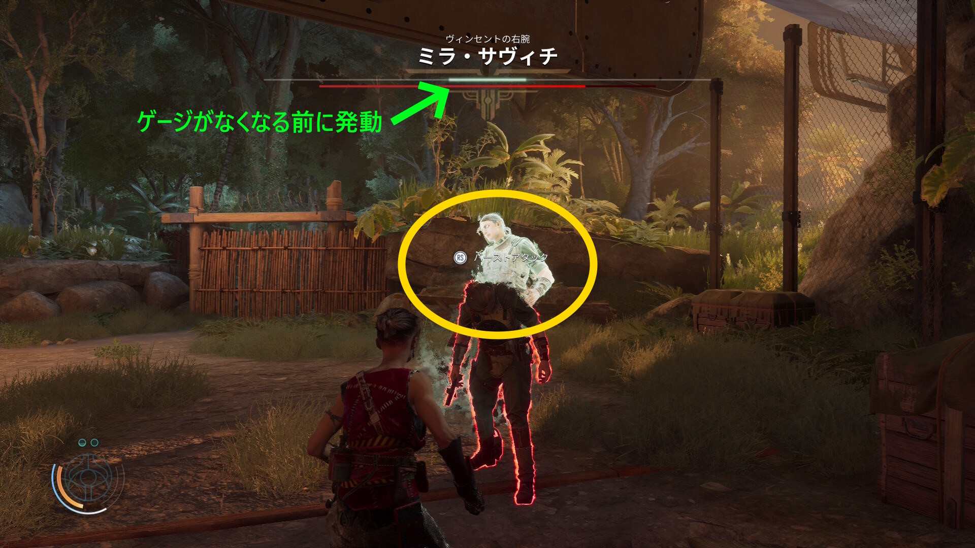 • ミラ・サヴィチの HP が残り1/4になるともう一度ダウンするので バーストアタック(5~8/20)
