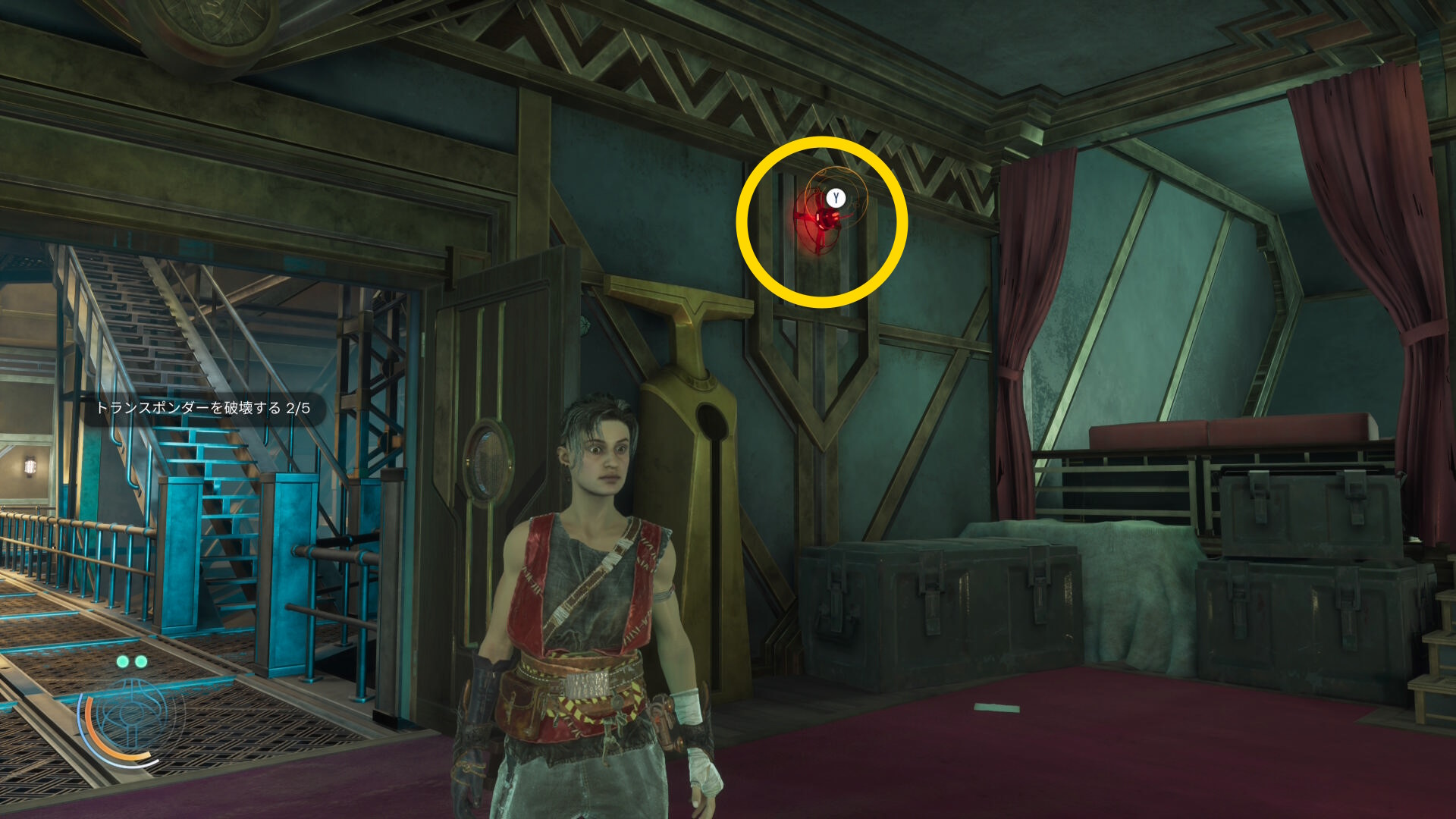 - この部屋に入るとシェードブレーサーが反応するが、目的のものは上階にあるので無視してオーケー