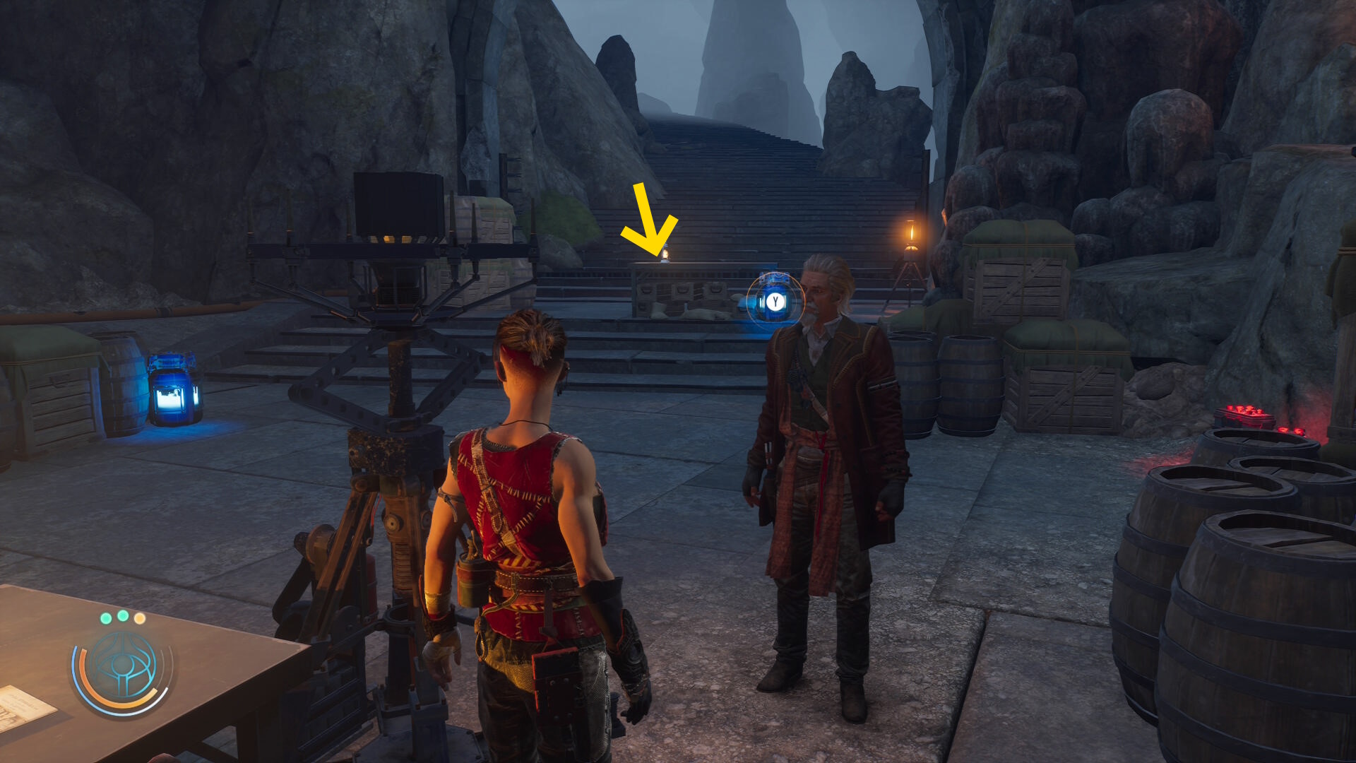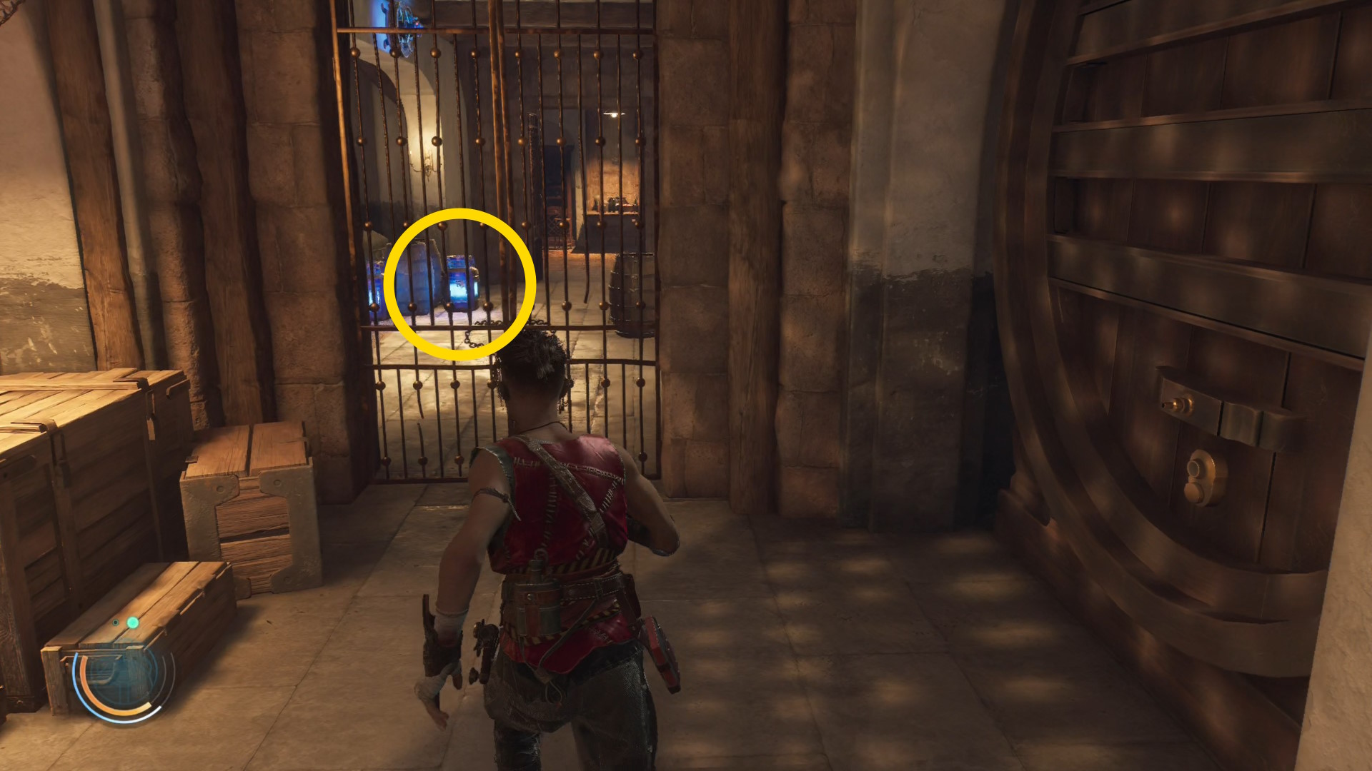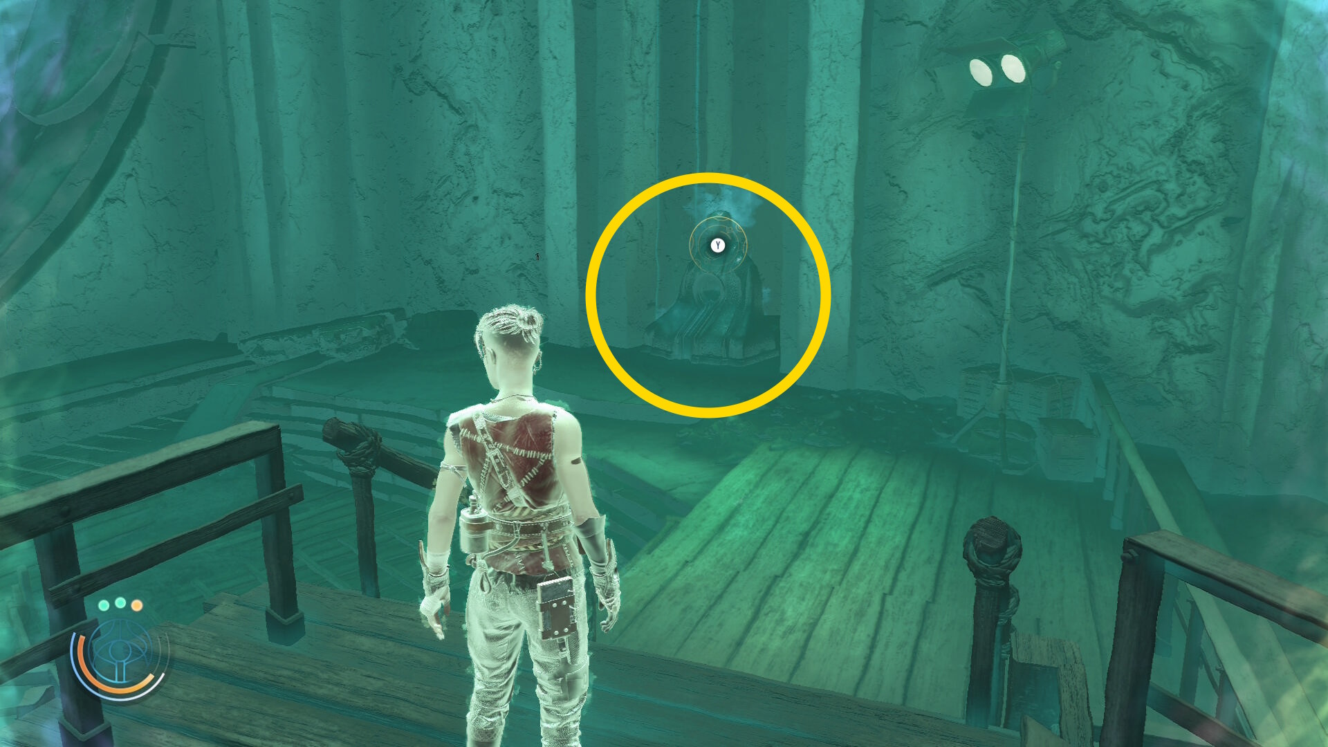 - 右に進み、間隙を飛び越えた先に木箱がある