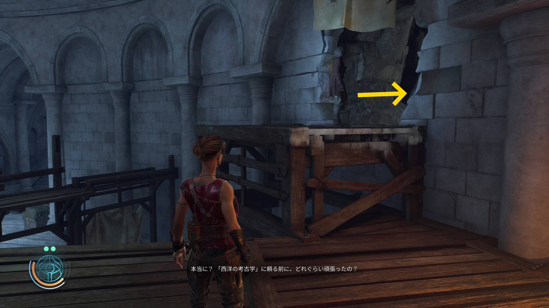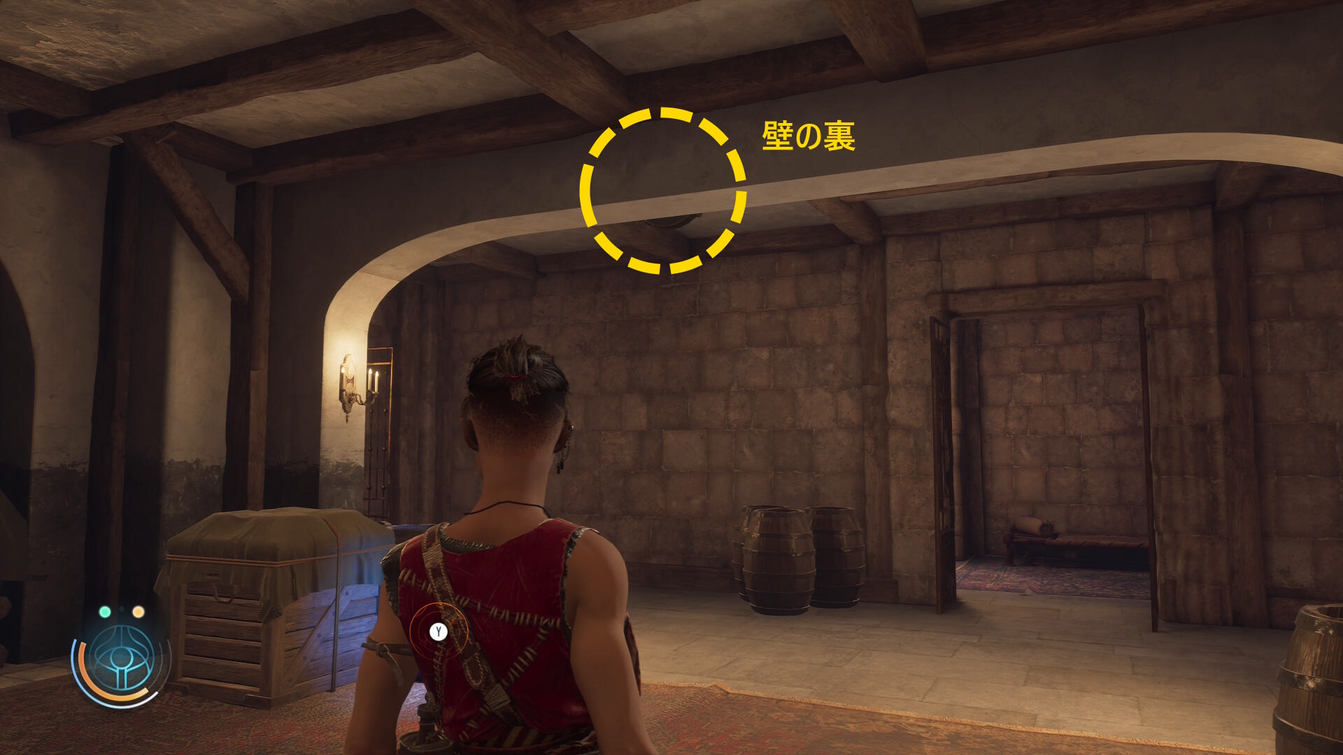 - 部屋に入り、右を向くと開口部があるのでそちらへ