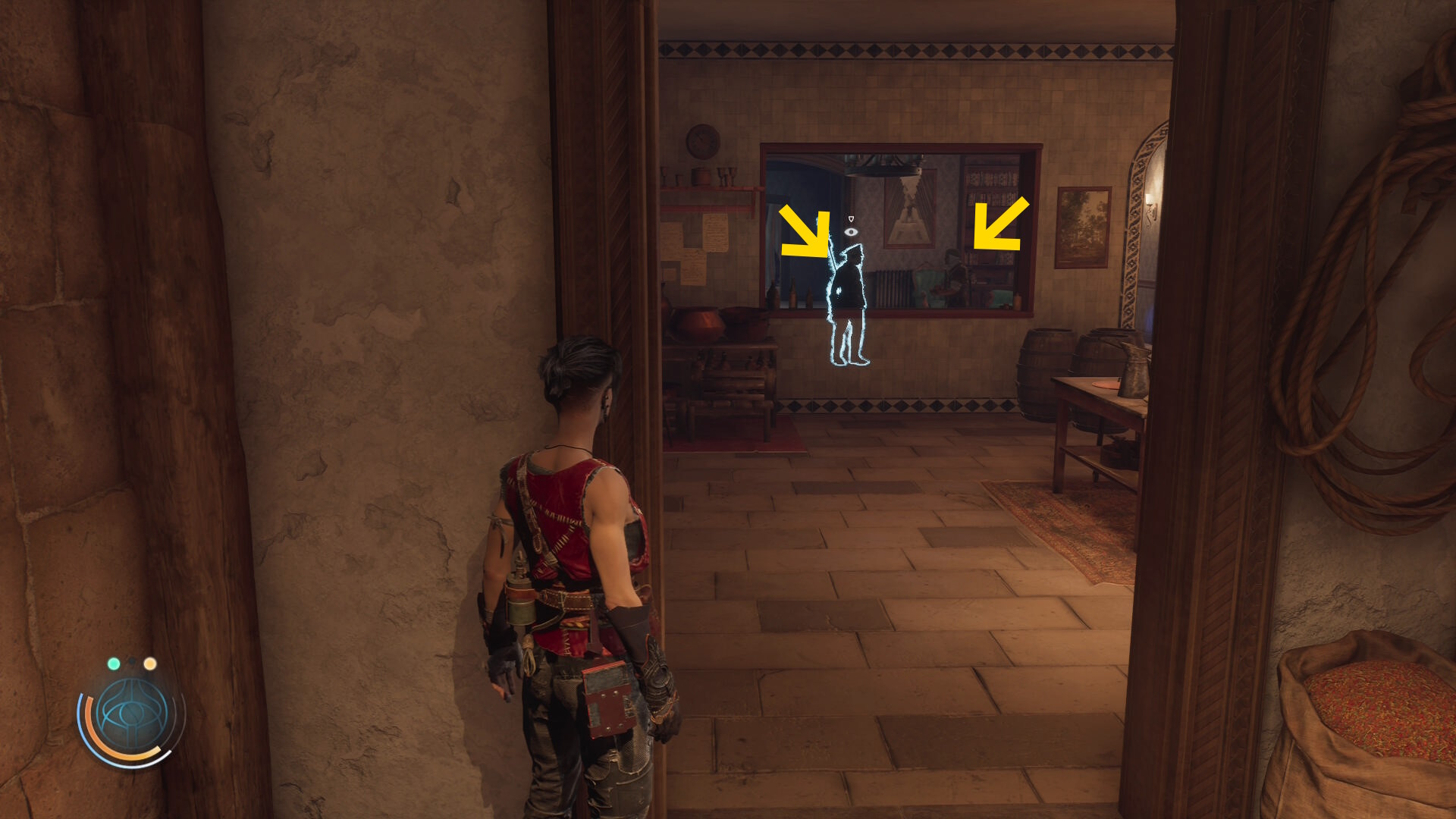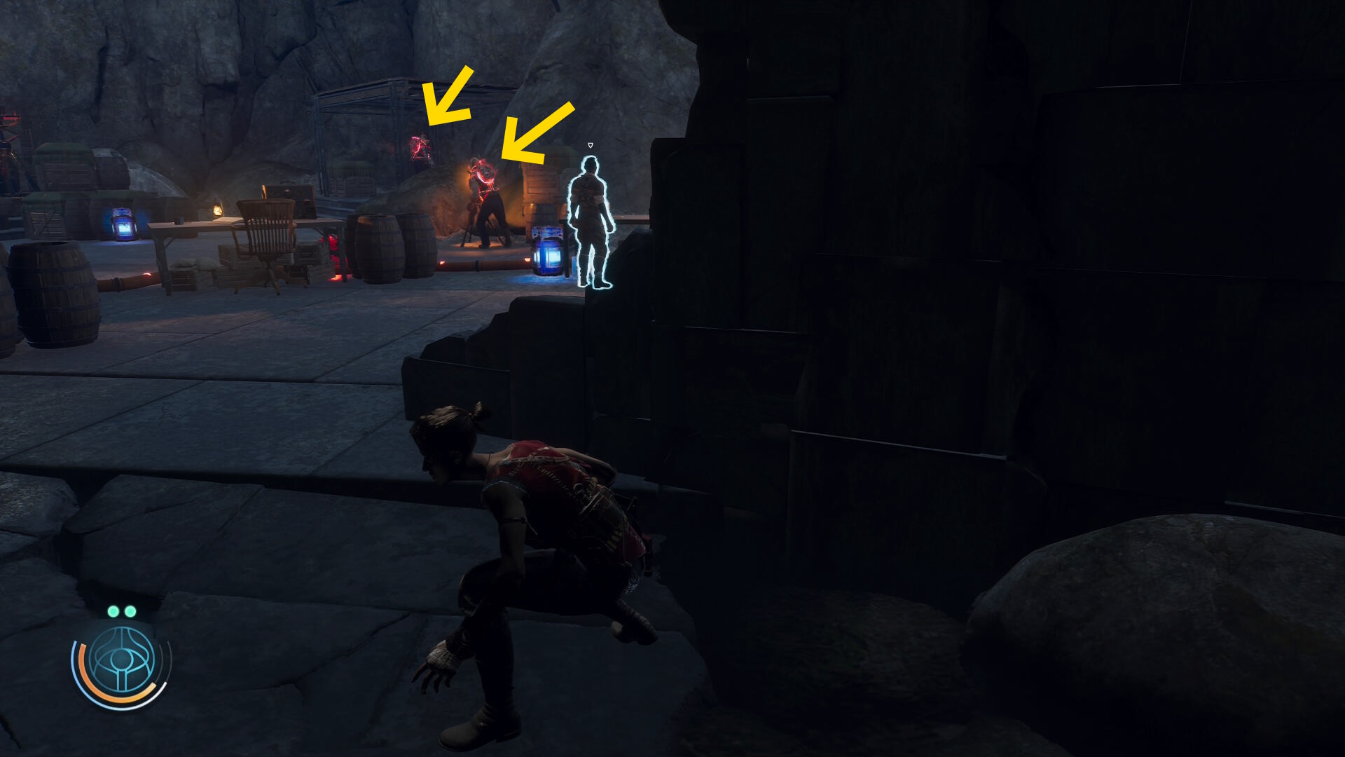 - 赤い扉を開けてアムキャニスターの説明を見たあと、2人の敵に存在がバレて戦闘になる(すぐしゃがめばバレないことが多い印象)