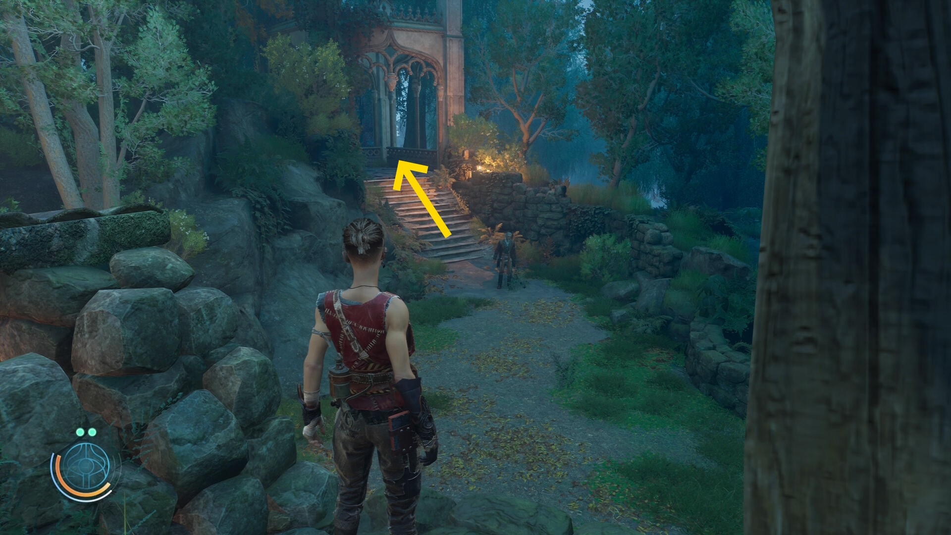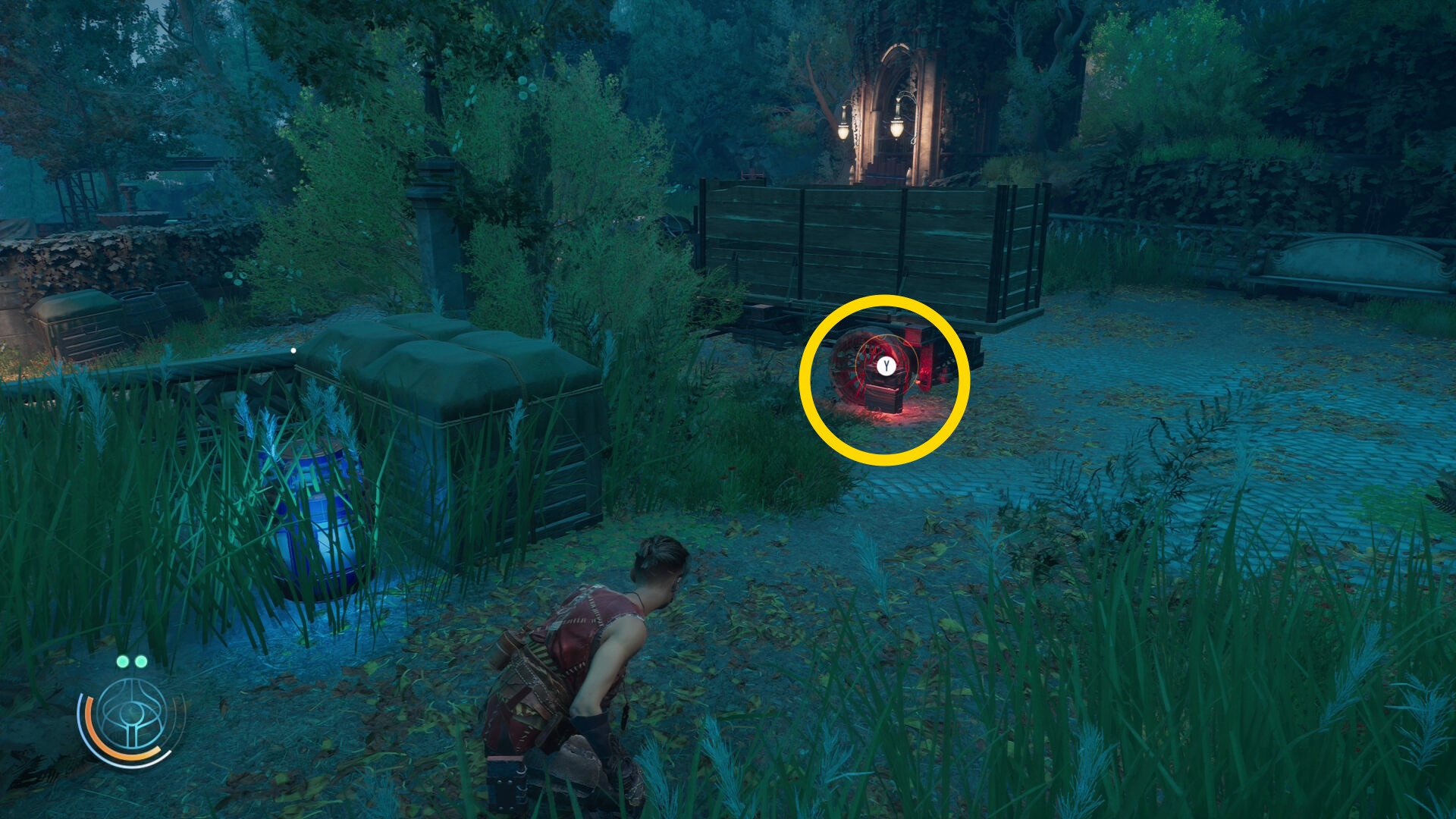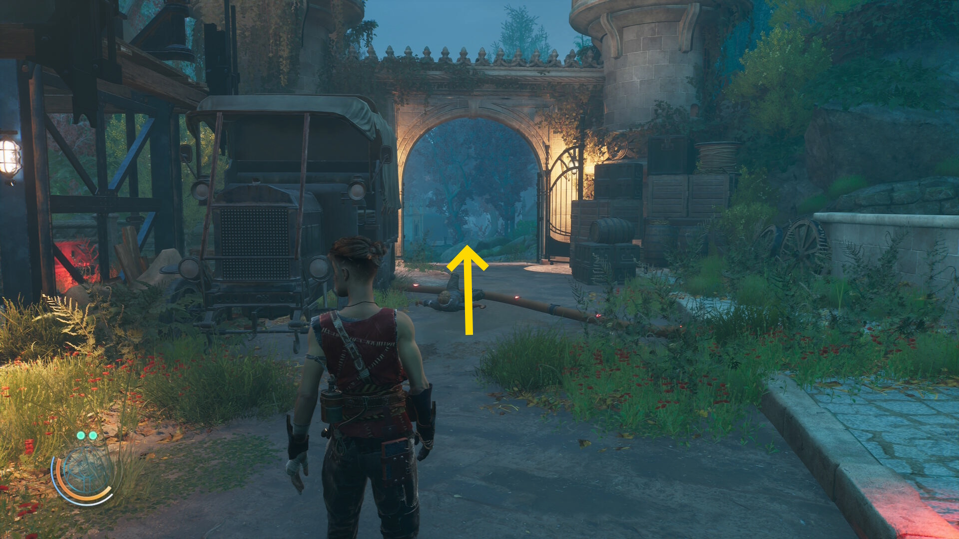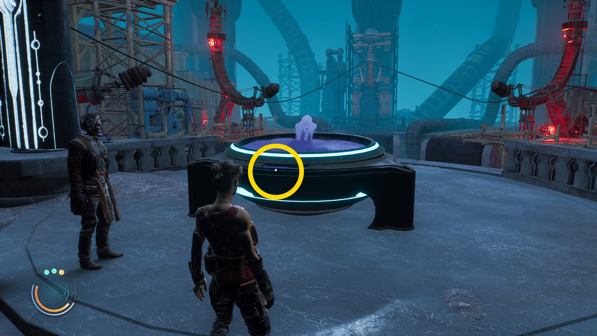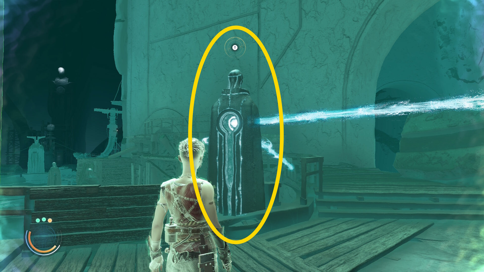 - カットシーン後、ソラリウムを出たら左に進み、ハーネスブルーザーを倒した小さな庭へ