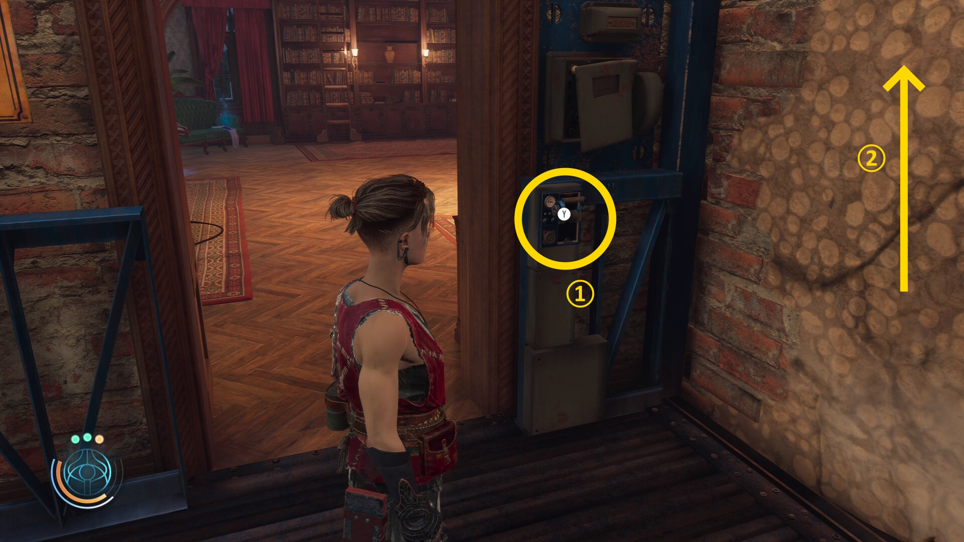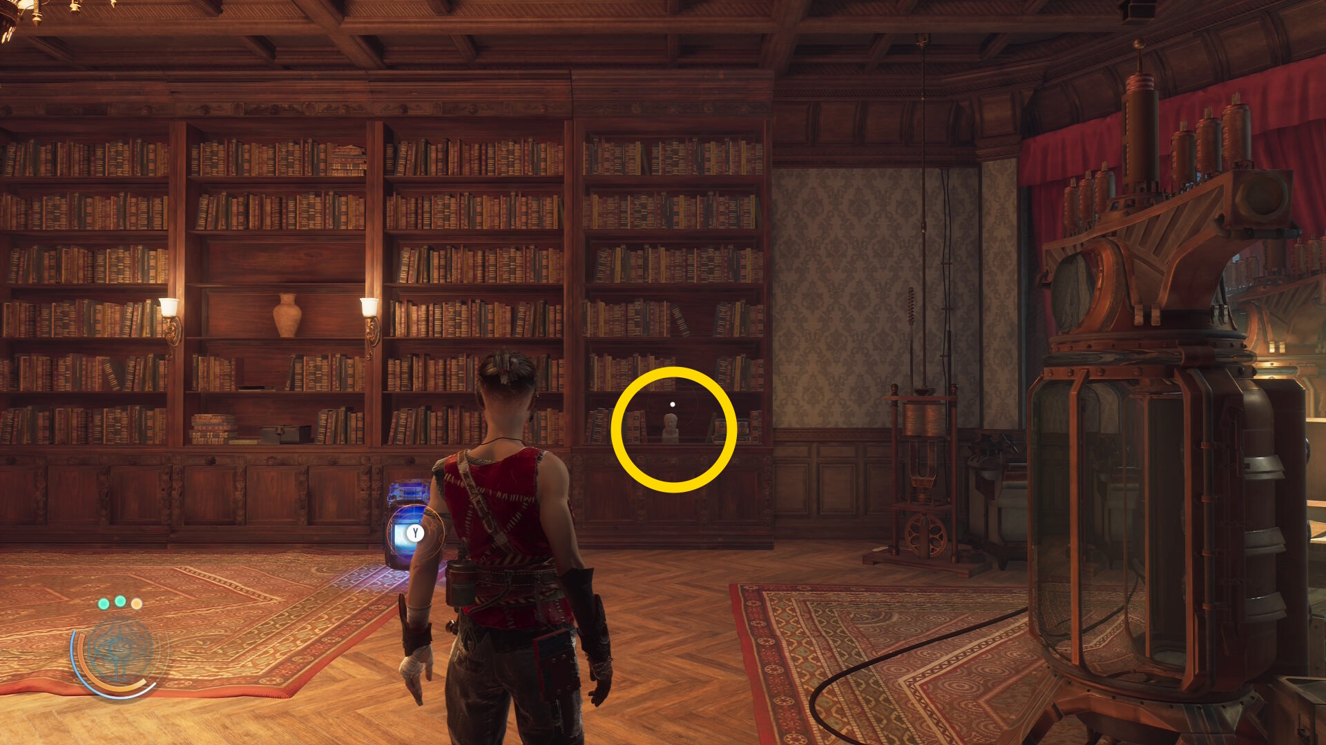 - テザリングカプセルの左にある本棚に行き、下段の置物を調べると隠しエレベーターが現れる