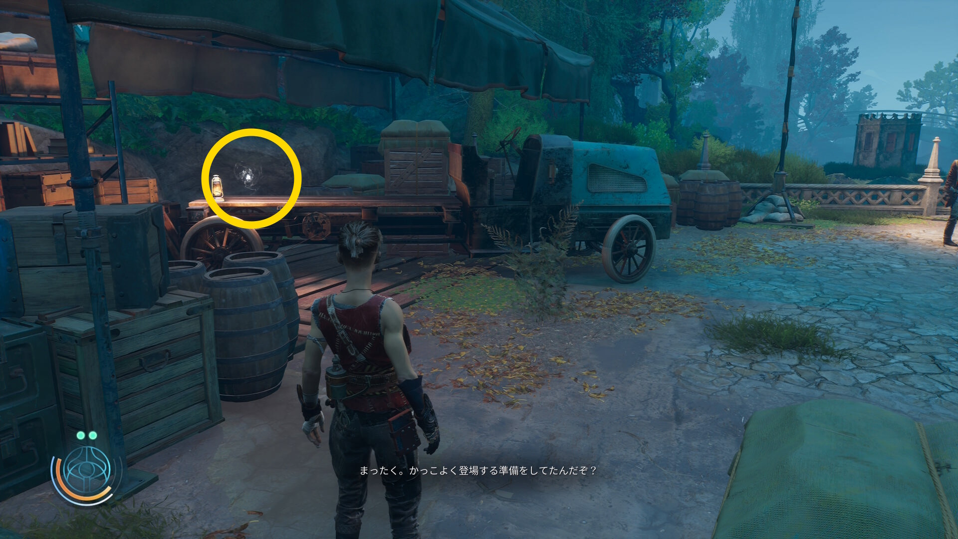 - なお、トラックの左後輪にバッテリーが置いてあり(下画像:2枚目)、近くで Y ボタンを押すとビリビリ&ダメージを受けるので注意
