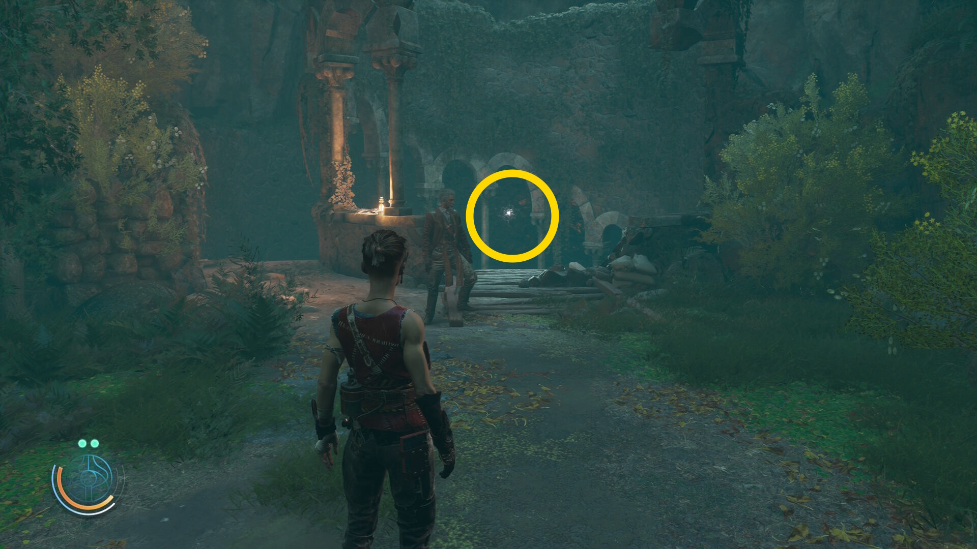 - 一本橋を戻るとその先でルーサーがしゃがんでいる