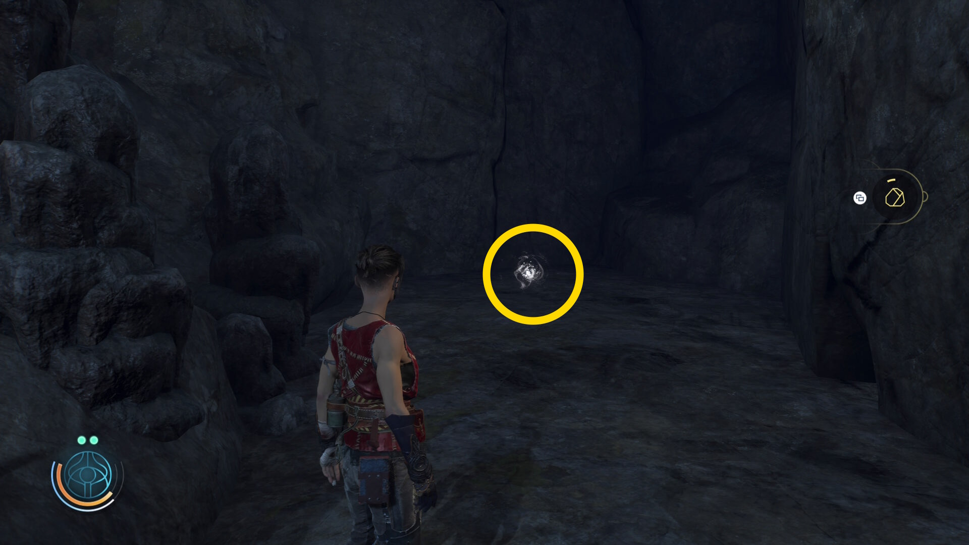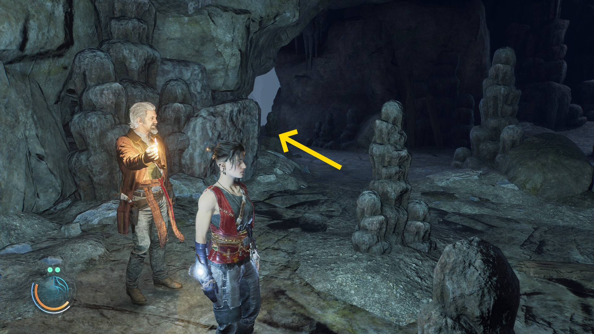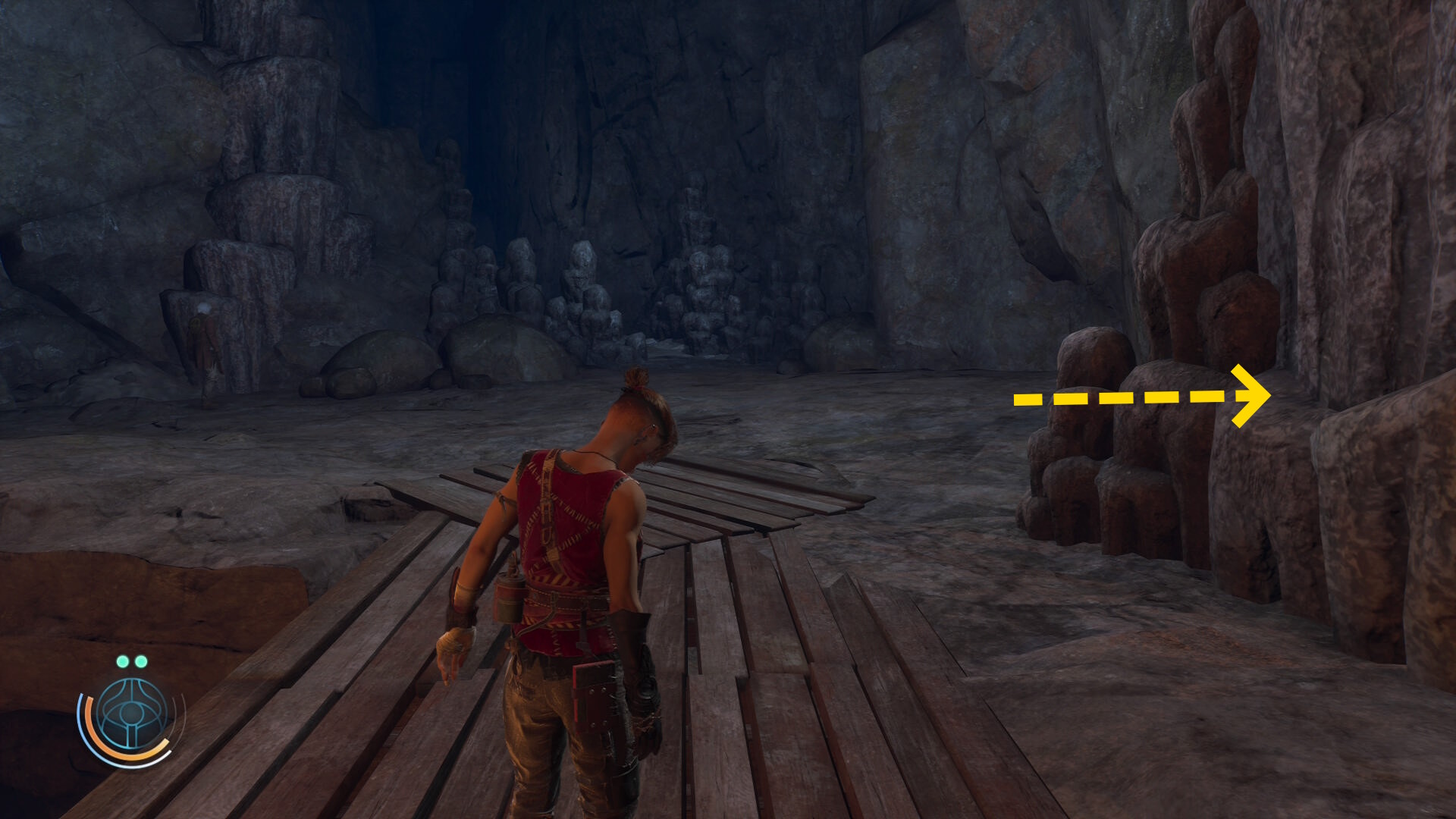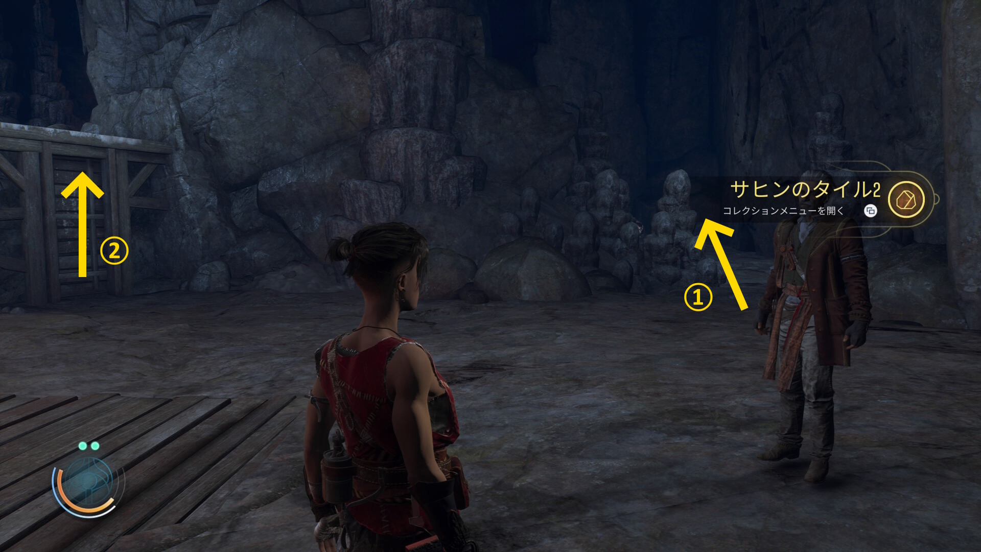 - サヒンのタイルを回収後、右を向くと鍾乳石が垂れ下がる暗がりがあるのでそちらへ