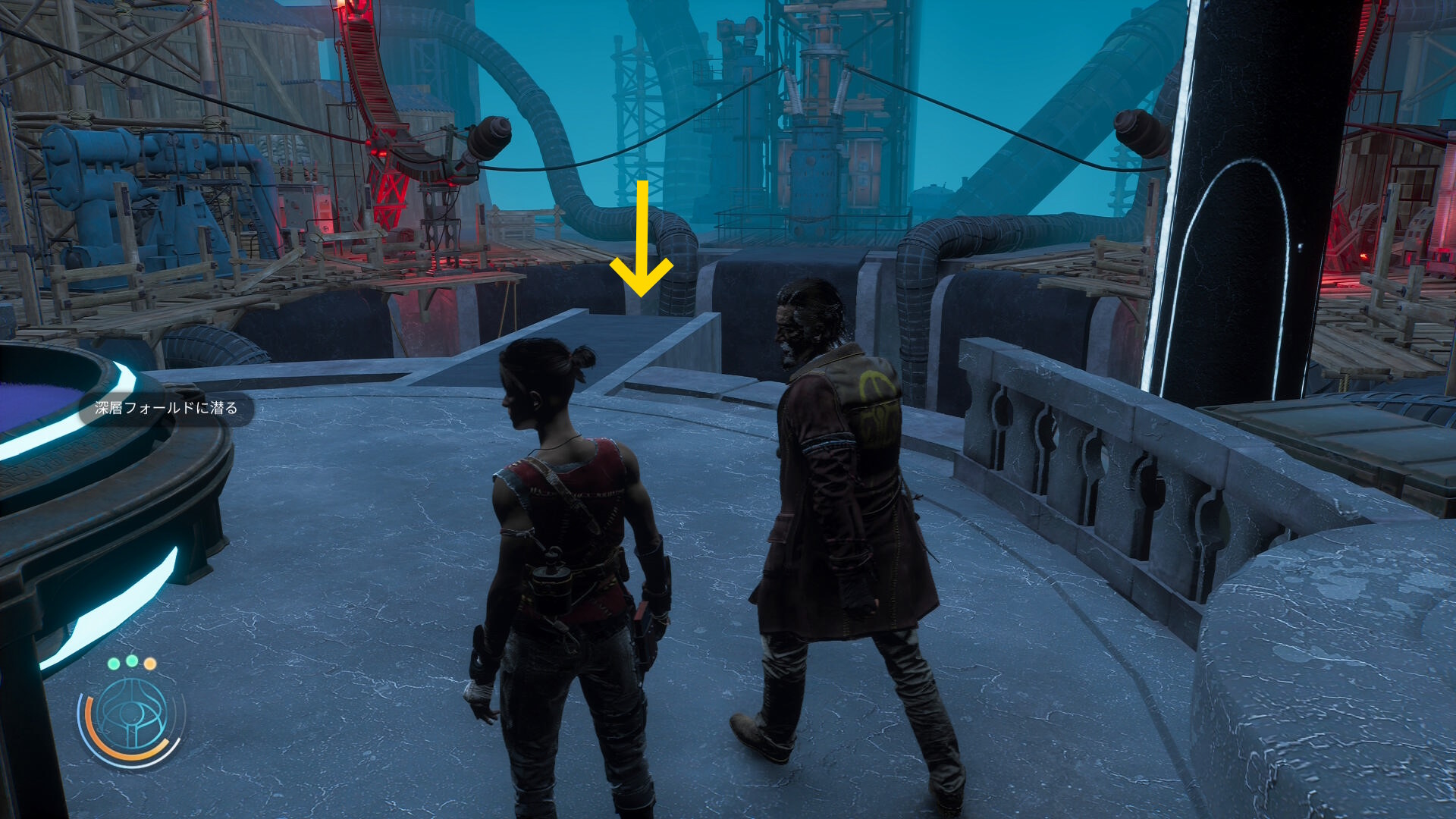 - そのシーンを観た後、左の段差をよじ登ればカットシーンとなって深層フォールドのクリア