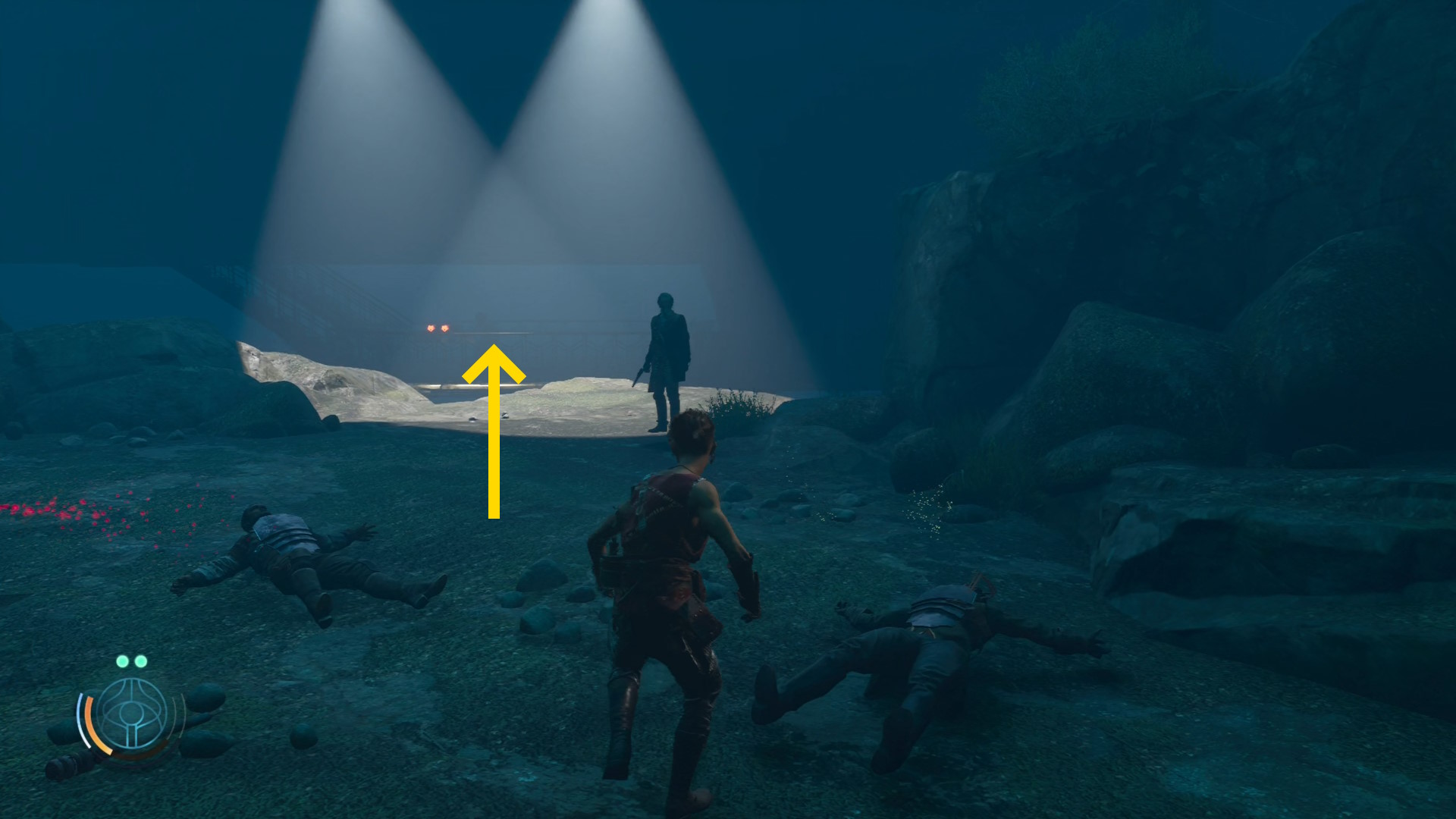 - なお、真下をマトスらが通過していき、その1人に見つかりそうな演出があるが無問題